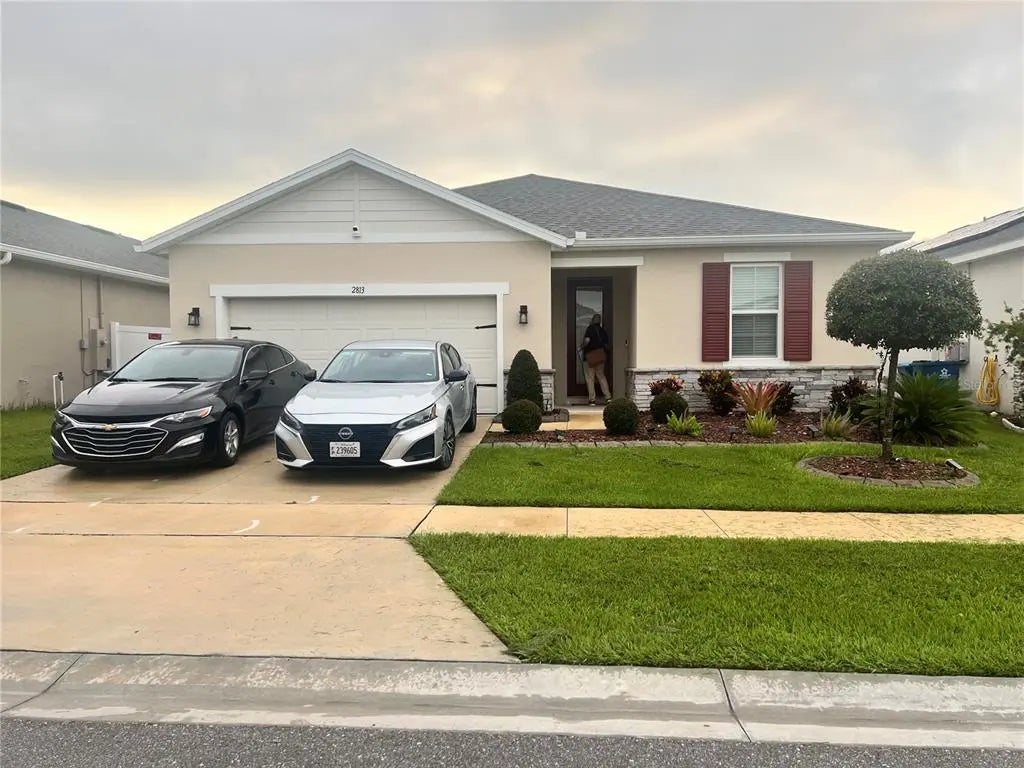 Welcome to this stunning 2023 new construction home located in the sought-after community of Sutton Preserve in Winter Haven. This beautifully designed single-story residence features a spacious open floor plan with 4 bedrooms and 3 bathrooms, including an oversized primary suite with a large walk-in closet and en-suite bath. Enjoy a modern kitchen equipped with granite countertops, brand-new stainless steel appliances, and ample storage. The split-bedroom layout ensures privacy and functionality, with abundant natural light throughout the living areas. Step outside to a charming covered front porch, ideal for relaxing outdoors, and a fully fenced backyard offering space and security for all your needs. Additional features include large walk-in closets in multiple bedrooms and a 2-car garage, alarm system and water purification for the whole house. Located just minutes from LEGOLAND, shopping, dining, and major attractions, this home offers the perfect blend of comfort and convenience. It has solar panels, the electricity monthly will be less than $40.