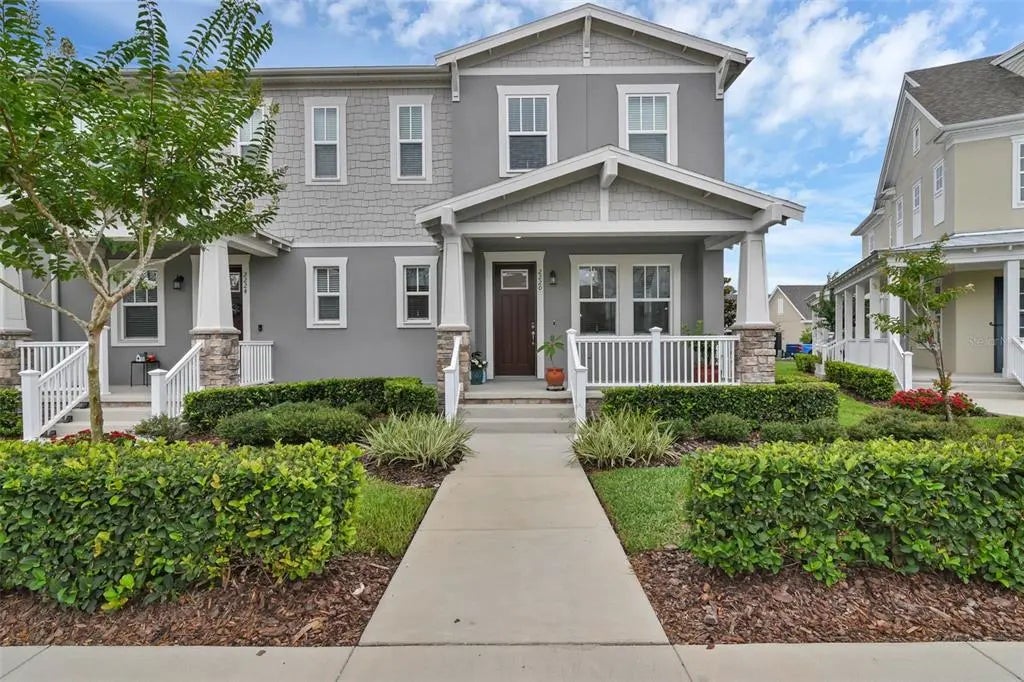 Welcome to Island Village at Celebration, where everyday living feels just a little more magical. Built in 2022, this rare end-unit townhome combines modern design with the warmth of a close-knit neighborhood. Sunlight streams through extra windows, filling the home with natural light and showcasing tall ceilings and luxury vinyl plank flooring throughout. At the center of the first floor is a kitchen made for connection, complete with quartz countertops, stainless steel appliances, and an oversized island that invites family and friends to gather. Step through to the screened lanai, a quiet retreat where mornings begin with coffee and evenings wind down in peace. Upstairs, three bedrooms provide comfort and privacy for everyone. The primary suite is a true escape, with a walk-in closet and double-sink bath. Everyday living is made simple with an upstairs laundry. Outside, the attached two-car garage features a durable epoxy floor and the rare bonus of a full driveway for extra parking. Just beyond your front door, you’re a short stroll from new restaurants, coffee, and the Island Village amenity center with its resort-style pool and fitness center. Beyond that, Celebration offers tree-lined paths, parks, top-rated schools, and the welcoming spirit of a Main Street-style community, all with quick access to Orlando’s parks, shopping, dining, and entertainment. This isn’t just a townhome, it’s a lifestyle. Modern, inviting, and move-in ready, it’s waiting for you to make it your own.
