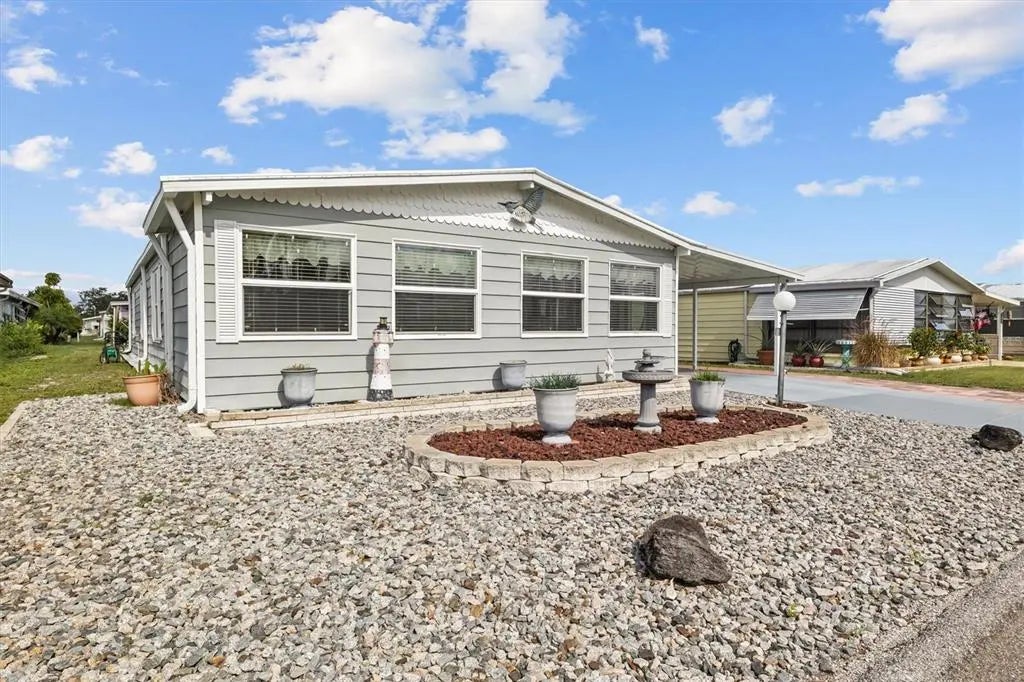 Welcome to this spacious very well maintained and updated double-wide manufactured home on OWNED land in the sought-after 55+ lakefront community of Lake n Golf Estates in Winter Haven. Offering a great floorplan and multiple living areas, this home combines modern updates with comfortable Florida living. The chef's kitchen was fully updated just two years ago, featuring new countertops, stainless steel appliances, and refreshed cabinetry. Wonderful dining room with updated built-in cabinetry. Other major improvements include a full carport replacement 2 years ago, an AC unit installed in 2020, a main roof replaced about 2 years ago, and a new front Florida room with roof replaced approximately 8 years ago. Inside, you’ll find updated flooring, an inside laundry room, a front Florida room under central air and heat, and an additional side Florida room with wall AC unit, perfect for relaxing or entertaining. A spacious double workshop offers plenty of storage and hobby space or room to park the golf cart in the back workshop. This home comes partially furnished and even includes a golf cart! Lake n Golf Estates provides the perfect amenities with a pool and spa, shuffleboard courts, clubhouse and community lake access and boat dock. Located near HWY 27, shopping, restaurants, and medical facilities, this community also offers low HOA fees of just $550 per year. Move-in ready and packed with value, this home is a must-see—schedule your private showing today!
