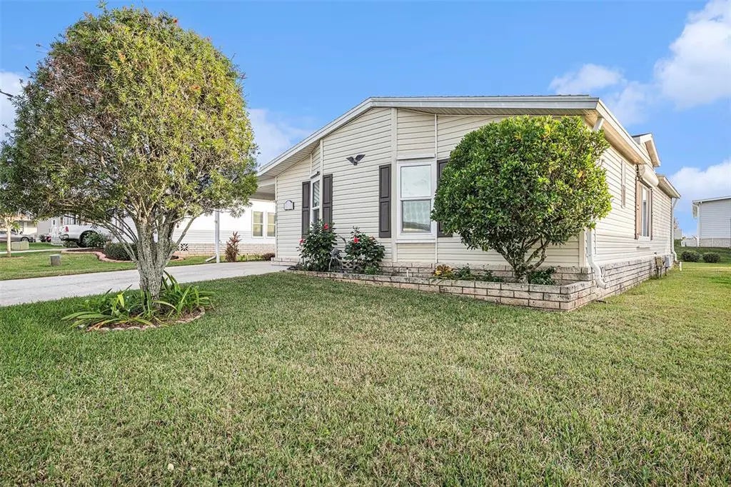 Well Maintained quality Jacobsen home in the Gated 55+ Community of Grand Horizons is Updated and Ready for New Owners! Furnishings available so you can move right in! Located on an interior street, on a high and dry lot, in the newer section of Grand Horizons with a 2 car carport plus an extra parking pad. Oval leaded glass door welcomes you to this OPEN floorplan with Dining area and Great Room as one spacious area with wood laminate floors and transom windows to let in lots of natural light! Owners retreat is at the front of the home off the foyer, with bay window bump out, wall to wall step in closet and bath en-suite which has linen closet, large shower and raised vanity counter. Convenient Galley kitchen has tile band accents, etched glass cabinet uppers for china display, newer appliances and a light, bright, eat in breakfast nook overlooking the backyard landscape. Sliding glass doors open to your enclosed Florida room with slider windows, vinyl floor and access to carport and back yard. Attached shed is set up as a workshop complete with tools and workbench just off the open back patio with retractable sunshade awning for those Sunny Florida days! Own your land in this Premier park with Private streets, Resident owned Amenities including clubhouse, heated pool, hot tub, shuffleboard, billiards, library with Wi-Fi, puzzles & movies, craft/sewing/quilting room, commercial kitchen and recreational space for potluck dinners, on-site entertainment, bingo, cards, games and community meetings. Grand Horizons is an Active community with planned events, activities, golf cart parades & travel excursions. Situated conveniently to shopping, banks, medical facilities, restaurants, theater, bowling, YMCA and major highways for easy commute to Wesley Chapel Outlet malls, Wiregrass mall, the Krate and the Grove, Ocala, Lakeland, Orlando and Tampa Airports plus the Beaches! Call Today!