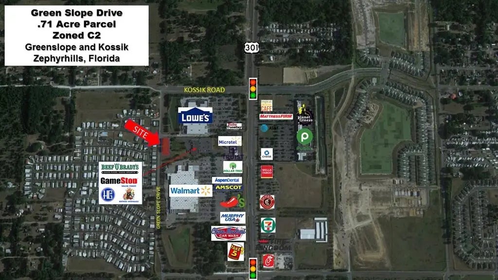 ZONED C2 in Zephyrhills! This .72 acre lot has endless possibilities. Located behind Wal-Mart Supercenter and Lowes Home Improvement on the busy secondary road. Build a small storage facility or speak with the city for potential multi-family use.