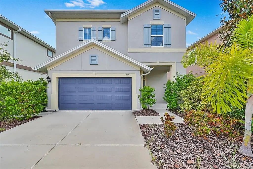 Huge price improvement! Welcome to this stunning home in the popular master planned community of Waterset! This meticulously maintained David Weekley home, built in 2015, offers the epitome of luxury living with custom touches and modern amenities. Boasting 3 bedrooms plus loft, 2.5 bathrooms, and a 2-car garage this home offers over 2400 sq ft providing ample room for both relaxation and entertainment. Once stepping inside you are greeted by soaring ceilings that create an open and airy ambiance throughout the home. The heart of the home lies in the gourmet kitchen, a chef's dream come true. You will love the stainless steel appliances with a new natural gas range, high end light fixtures, granite countertops, 42" wood cabinets and an abundance of cabinet and counter space. The walk in pantry has custom wood shelving with plenty of room for all your essentials. The kitchen is as functional as it is beautiful. The expansive island provides additional seating and is perfect for gathering with family and friends. The open floor plan flows directly into the dining room and family room. The oversized family room has plenty of space for any sized furniture and you will love the floating built in entertainment center and floating built in desk! <