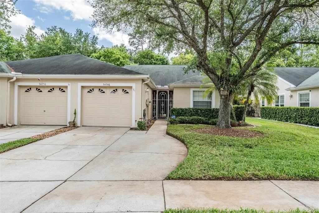 PRICE IMPROVMENT and NEW ROOF coming in January. The LIFESTYLE you’ve always dreamed of in the HOME you're sure to fall in love with! Welcome to the Augusta Links Neighborhood nestled within the serene and scenic Golf Course Community of Lake Bernadette. This lovely Villa located in a quiet, wooded cul-de-sac welcomes you with its spacious OPEN floorplan and Soaring Ceilings. The Double Sliding Glass Doors lead to the rear Screened Lanai and a Peaceful Conservation View. This home is perfect for entertaining friends and family! The large ceramic tiled Kitchen with Granite Countertops, Custom Glass-Front Cabinetry, and Stainless-Steel Appliances offers the host an expanded view of all activity happening in the Living and Dining areas of the enormous 17’ x 23’ tiled Great Room. Located in the front of the home, just off the foyer, is the secondary Bedroom, measuring 11’ x 13.5’. It’s also in this area of the Split-Bedroom Plan where you will find the Second Bath and Linen Closet, effectively turning this space into a 2nd Owner’s Suite! The 11’ x 17’ Primary Bedroom, located in the rear of the home, features a Large Double Window overlooking the Rear Conservation Property. A Pocket Door divides the Primary Suite from the ensuite bath which showcases a Large Walk-in Closet with Mirrored Bi-Fold Doors and an expansive 7’ Granite Countertop with dual sinks separated by a make-up vanity. A second Pocket Door provides privacy for the Walk-in Shower and Commode. A Stackable Washer and Dryer are housed in the ATTACHED One-Car Garage, although they may be readily moved to their original location in the large closet (outfitted with a washer/dryer hookup) off the common area currently being utilized as a coat closet. The Panel for the Wired Alarm System is in the kitchen next to the door leading to the garage. For additional peace of mind, the seller is offering a 1-year ShieldComplete American Home Shield Warranty. This lovely Maintenance Free Villa includes Lawn Care (mow, trim, blow, fertilize, pest control, sprinkler system upkeep), twice-weekly Trash Pickup, ROOF REPLACEMENT, and Exterior Painting packaged in a low quarterly fee. Along with the Public Golf Course and Restaurant, PRIVATE Lake Bernadette amenities include 2 Swimming Pools (one heated), Fitness Center, Basketball, Tennis & Pickleball Courts, Playground, Clubhouse with banquet/party room and regular monthly planned events/activities. Located in SUNNY FLORIDA, just minutes from Historic Dade City, Downtown Zephyrhills and major highways to Wesley Chapel, Tampa/St. Petersburg/Clearwater, Ocala, Orlando, International Airports, and the Beaches. Preview this home today!