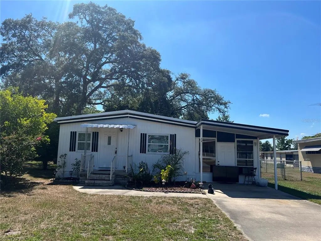 Light and bright! This fully furnished 2 bedroom 2 bath offers tile throughout. The functional eat in kitchen overlooks the living room. The spacious master bedroom has a ceiling fan and outdoor entrance to the fenced backyard and its own master bath with newer vanity and shower, The second bedroom is also spacious with a ceiling fan and outdoor entrance to the fenced backyard and the second bathroom has a tiled tub/shower combo with newer vanity. Huge Florida room with tiled floor and window a/c unit so it can be utilized yearound. The convenient utility shed comes with the washer, dryer and additional storage. This home features a low maintenance exterior with a sturdy metal roof, new A/C ductwork, new vapor barrier, new plumbing, electric is all up to code, new chain link fenced backyard. Located in the sought after Highpoint community where you own your own land and the HOA fee is a low $48 a month. An Active 55 plus community offering heated pool, golf membership, restaurant and more. Fully furnished can close fast! Seller says make an offer!