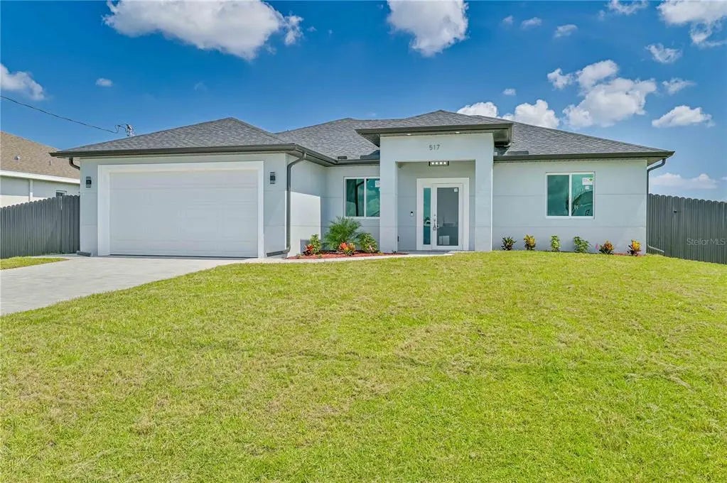 *10,000 ASSISTANCE AVAILABLE TO BUYER FOR CLOSING COSTS* Welcome to your future oasis, a stunning 3 beds 2 baths Brand New Home that is ready to embrace your lifestyle! This 2024 SMART HOME features a ring camera in the front door, a wifi thermostat that is Alexa compatible, a Wi-Fi-enabled garage door, and a low voltage enclosure. PUBLIC WATER AND SEWER are already connected, making your transition to this haven hassle-free. As you step through the front door, you will immediately notice the spacious, open-concept living area and the 9.4’ high ceilings. The entire home is bathed in natural light, thanks to its multiple energy-efficient windows that invite the Florida sunshine inside. The pristine 32x32 porcelain tiles that span throughout the home create a bright and airy atmosphere. If the kitchen is the heart of a home, then this one will steal yours. With quartz countertops, 36" wood cabinets, and gleaming stainless-steel appliances, you'll feel like a chef every time you cook. Your master bedroom is a retreat within a retreat, featuring a walk-in closet, dual sink vanity with LED mirrors in the ensuite bathroom, and a frameless glass shower enclosure. WASHER AND DRYER INCLUDED. This charming home boasts a sparkling POOL with a pool chlorination system by electrolysis and a pool alarm with a water motion sensor with a repeater inside the house. This modern and secure pool with the latest technology gives you peace of mind and it is perfect for entertaining or simply unwinding after a long day. Nestled within a FULLY FENCED yard, privacy is paramount as you enjoy the sun-drenched pavers surrounding your poolside haven. Convenience meets luxury with the paved driveway that leads to your two-car garage with a Wi-fi-enabled garage door, ensuring your vehicles are well protected. And speaking of convenience, you're just a stone's throw away from PINE ISLAND RD where you can find all your local amenities, schools, and recreational areas. Plus, there are no Deed Restrictions, no HOA, and no CDD fees providing you with the freedom to live life on your terms. This is more than just a home; it's a lifestyle upgrade. Schedule a showing today and prepare to fall in love with your future. Your dream home awaits!