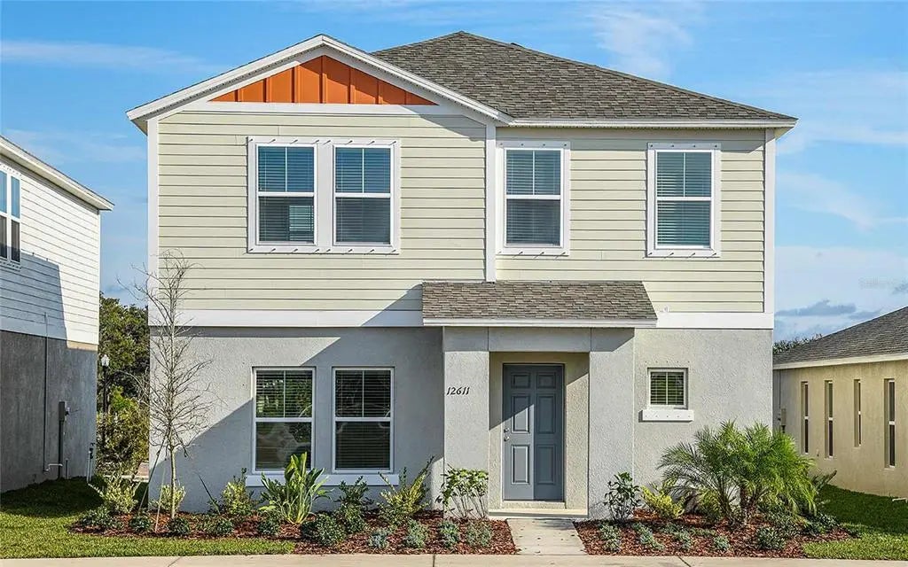 Experience the Arroyo, an exceptionally designed two-story home that blends luxury and practicality. With 4 bedrooms, 2.5 bathrooms, and a 2-car rear load garage, this home offers ample space for comfortable living. The charming front porch and stylish elevation create an inviting first impression, while the professionally designed landscaping enhances the home's curb appeal. On the first floor, you'll find luxurious vinyl plank flooring throughout, adding a touch of sophistication to the open-concept layout. The kitchen showcases stunning quartz countertops and is equipped with all-new stainless-steel appliances. The half bathroom off the kitchen makes entertaining a breeze, relax on the covered lanai off the dining room or head upstairs to unwind in the expansive recreation room. The second floor features the spacious owner's suite featuring a spa-like bathroom with double vanities, a walk-in shower, and a generously sized walk-in closet. A laundry room with brand-new washer and dryer is conveniently located near the secondary bedrooms and full bathroom. The home also includes a smart thermostat for easy climate control and energy efficiency. The Arroyo combines functionality and elegance, making it a perfect choice for any homeowner. Ready to make it yours? Contact us and see what Casa Fresca living is all about! Tucked away in the heart of Winter Haven, FL, you'll find Harmony at Lake Eloise. This new home community features one-and-two-story homes ranging from 1,469 sq. ft. to 3,364 sq. ft featuring modern open floor plans, sizeable kitchens, and spacious bedrooms. Enjoy an endless list of things to do within a short drive of your new home like the largest LEGOLAND® Florida Resort and more. Enjoy a variety of water sports and activities on Winter Haven’s famous Chain of Lakes. Enjoy this lakefront lifestyle by kayaking, paddleboarding, fishing or water-skiing. For the self-proclaimed foodies, enjoy lakeside and locally owned artisan restaurants in the beautifully restored historic downtown district. Enjoy the best of what Winter Haven has to offer, all within minutes of Harmony at Lake Eloise and your new boldly, unboring Casa Fresca home. Start fresh, contact us today and start your new home journey! Images shown are for illustrative purposes only and may differ from actual home. Completion date subject to change.
