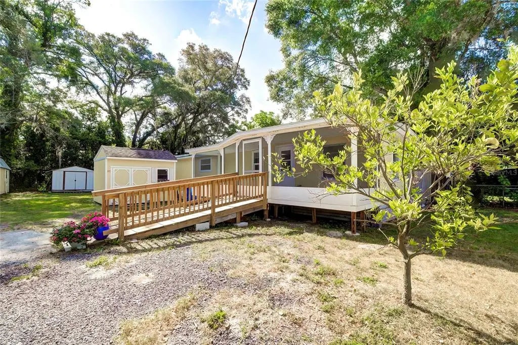 REMODELED MOVE-IN READY COTTAGE HOUSE on a country road, ten minutes from Publix, Applebees, Walmart and every eatery and shopping center in between. Located off of County Line and Ayers Rd., this one bedroom/one bath 550 sq. ft plus 130 sq. ft screened-in porch offers you a host of opportunities to encounter those ideas you’ve entertained for so long. Considering a low maintenance second home to escape to? What would you do with a large workshop if you had one? Restore old furniture, or cars? Take on a part time hobby? Make the perfect man cave (or she shed)? A/C is 2022. Kitchen remodeled in 2023. Tankless water heater 2022. There are three sheds on the property. The one adjacent to the home is the laundry room, measuring 9 X 7 ft. The metal shed measures 13 X 11 ft. Perfect for all types of storage. Then there is the large workshop, measuring 23 X 11 ft.; this unit has electric, plenty of outlets and shelving for allll your gadgets and tools and toys. Together, they give you an additional 433 sq. ft of space, ready to tailor to your wants. Downsizing couldn’t be more wonderful! NO HOA. NO lot rent. NO CDD. Plenty of storage space. Newer A/C, tankless water heater, metal roof, remodeled kitchen. And no stairs! Save money on utilities! Clean your entire house in less than an hour! Hang your hammock AND bring your rocking chairs! Enjoy the orange, grapefruit and peach trees. Looking forward to seeing you!