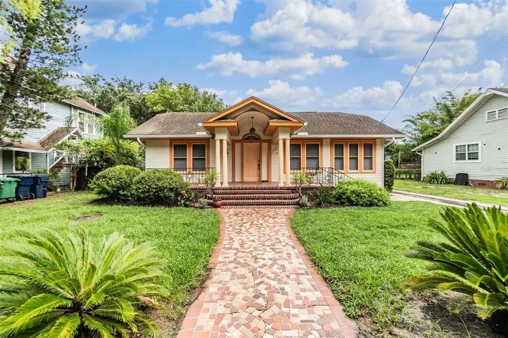 1920's Bungalow with character, charm, a vintage wet bar and 2 CAR GARAGE APARTMENT! The main house is a 3/1 with two bonus rooms! When you walk up to the home the first thing you will notice is the beautifully carved wooden front door! It is said that the original owner of the home was one of the post masters of Tampa, and the door was a love letter/gift hand carved for his wife! As you walk through out the main house there are many notable original aspects to the home that have been restored/preserved. From the BUTLER kitchen door, 1920's arches, to the popular vintage crystal/glass bedroom handles, original hardwood floors, the 1920's pink bathroom, light fixtures and chandeliers, to the noteworthy wet bar in the 3rd bedroom. If you love bungalow character this home is for you! Once you enter the dining room you will notice beautiful curved french doors to the bonus window room. A PERFECT place to unwind and relax in your home flooded with natural light. Going through the Butler door to the kitchen take notice of the FULLY RENOVATED 2024 kitchen. Quartz Countertops, brand new appliances with 3 year warranty, a GAS stove, FULL PANTRY, and eat in bar area. The Kitchen faces another BONUS room that could be converted into a full laundry room. Off the kitchen you will enter the 3rd bedroom. This room is a vibe! The wet bar and walk in storage closet are perfect for entertaining. If not your style this room could easily be converted into a master bedroom with walk in bath as closet is next to bonus room where plumbing is available. Other NOTEWORTHY UPGRADES: NEW tankless hot water heater in the main house, Insulation 2024, Extermination Treatment 2024 (Warranty in place and transferable), new gutters, new windows in bedroom of apartment, new sewer line and plumbing in place to add laundry to main house, brand new transferable security system, new back door to main house, both main and garage apartment are freshly painted inside and out, new blinds, updated electric, new roof on Garage Apartment, HVAC freshly serviced with membership that is transferable to buyers. Now, let's talk GARAGE APARTMENT! Down stairs you will find a 2 car garage with attached large laundry room and half bath. Parking and storage galore! Or you could fully convert the garage into another 1/1 and have DOUBLE RENTAL INCOME. As you enter the apartment upstairs note the arches and period appropriate charm! This 1/1 apartment is spacious with separate living room, kitchen, dinning room and bedroom. The apartment has a bungalow style bathroom and large screened in porch perfect for relaxing in the evening or a morning coffee with the song birds. Minutes from downtown and all major highways the location could not be more perfect! Walking distances to trending Seminole Heights bars, restaurants and shops.