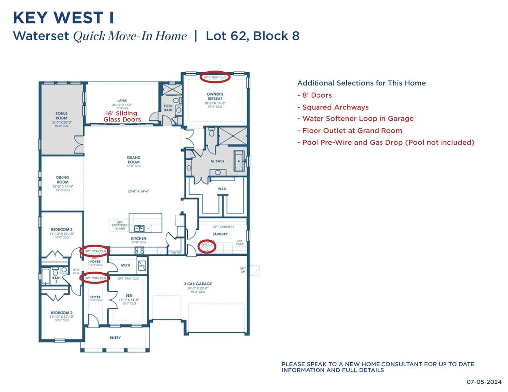This Key West Quick Move-In Home is Ready Now! The Key West is a bright, airy floor plan that flows beautifully from the foyer through to the expansive open living areas and continuing out to the oversized covered lanai; designed for extensive outdoor living. An ideal layout for those who enjoy the Florida lifestyle! The common living areas include the extended foyer, den, grand room and kitchen with large central island—all with grand 12' foot ceilings. The dining room is equally perfect for elegant evenings or casual gatherings. DEN and BONUS Included! The private owner’s retreat, with large spa-like bathroom and huge walk-in closet, is separate from the two additional bedrooms. This home features Sonoma Linen cabinets, Calacatta Novello Quartz counter-tops, Baker Street Wht. LVP flooring, and more. Waterset, a 1,319-acre residential master-planned development in Apollo Beach, FL 33572. It will eventually comprise of approximately 2,900 single-family homes and 900 multi-family homes with several recreational facilities, schools, shopping and dining and promises to be a vibrant, home-town community. The character of the neighborhoods will be further enhanced by thoughtfully designed pedestrian areas, open green spaces, public gardens and parks in addition to playgrounds and sports fields. Careful consideration has been given to environmental sensitivity through water preservation and protected conservation. The entire landscape pattern will be defined by the natural flora and fauna, its lakes, streams, wetland, woodlands, and conservation and preservation areas. Images shown are for illustrative purposes only and may differ from actual home. Completion date subject to change.