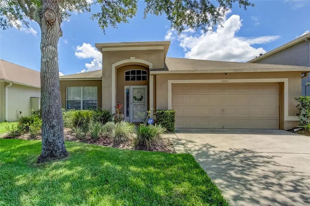 This updated 4-bedroom, 2-bathroom home spans 1,979 square feet. Recent upgrades include NEW FLOORING and new bedroom carpeting 2021, along with NEW APPLIANCES and NEW WATER HEATER 2022. BRAND NEW Quartz countertops and a coffee bar were added to the kitchen in 2023. Inside, spacious living areas provide ample room for relaxation and entertaining. The kitchen boasts modern appliances, abundant cabinetry, and a breakfast bar, perfect for casual dining. Adjacent is a cozy dining area ideal for family meals or intimate gatherings. The primary bedroom offers a serene retreat with an ensuite bathroom featuring dual sinks and a luxurious soaking tub. Three additional bedrooms provide flexibility for family, guests, or a home office setup. Outside, the expansive backyard invites outdoor activities and gatherings, with plenty of space for gardening or enjoying Florida's sunshine. A two-car garage ensures convenient parking and additional storage. Located in Wesley Chapel, known for its family-friendly atmosphere and this home is close to shopping, dining, entertainment, and major highways for easy commuting.