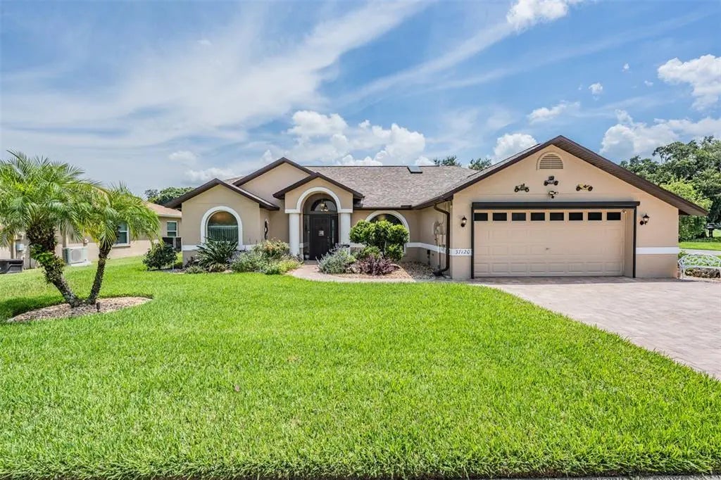 Welcome to your Silver Oaks POOL Home on Lushly Landscaped, Spacious Corner lot! GREAT CURB APPEAL with Brick PAVER Driveway and Walkway, along flowers and perennials, to your screened front entry. Foyer greets you with Stunning Ceramic Tile floors on the diagonal thru common areas in this OPEN 3 bedroom, 2 bath floorplan with newly painted interior, cathedral ceilings and plant shelves adding architectural interest. The great room offers an expansive living and dining area with slider doors opening to the lanai for seamless indoor-outdoor living. Formal dining area is being used as a home office with Palladium window overlooking front landscape bed. Convenient Galley kitchen is equipped with 2021 Stainless steel appliances, 42" warm wood cabinets with crown molding, plant shelves and is open to great room, making it ideal for entertaining! Owners retreat is private with sliders to access pool area, has 2 separate walk in closets and luxurious bath ensuite with jetted soaking tub, plus separate shower, dual vanities and water closet. Guest bedrooms with wood laminate floors and full pool bath, with linen closet, 2 sinks with tile floor are on the opposite side of the home for privacy. Custom built by Ryman Construction, this home features a Roman style 14 x 28 in-ground heated pool with Paver pool deck and sitting area to watch the game! Cool off or swim laps in your Sparkling, salt water, swimming pool with water feature, then visit your Sauna for extra health benefits! Additional features include Newer Dimensional shingle Roof, 35 Solar panels for low ($35-$39) utility bills, all new Hurricane windows, home is wired for portable generator for power outages, automatic sprinkler system, interior laundry room with high efficiency washer/dryer with storage cabinets above and garage features utility sink, extra storage and a dedicated area for a golf cart. Nestled in Silver Oaks, this home is adjacent to the picturesque Silverado Golf Course to enjoy STUNNING SUNSET views of the course from your property without needing to be on it, or take advantage of the driving range, pro shop, clubhouse and golf membership options available where you can use your own golf cart on the course! Low quarterly HOA and No CDD fees in this quaint community with sidewalks and winding streets around ponds and the Silverado Golf course, with a back gate at the North end, for security, offers easy access out the back gate for residents to get to shopping, restaurants, bowling, theater, medical facilities, daycare, schools and the YMCA in minutes! CALL TODAY!