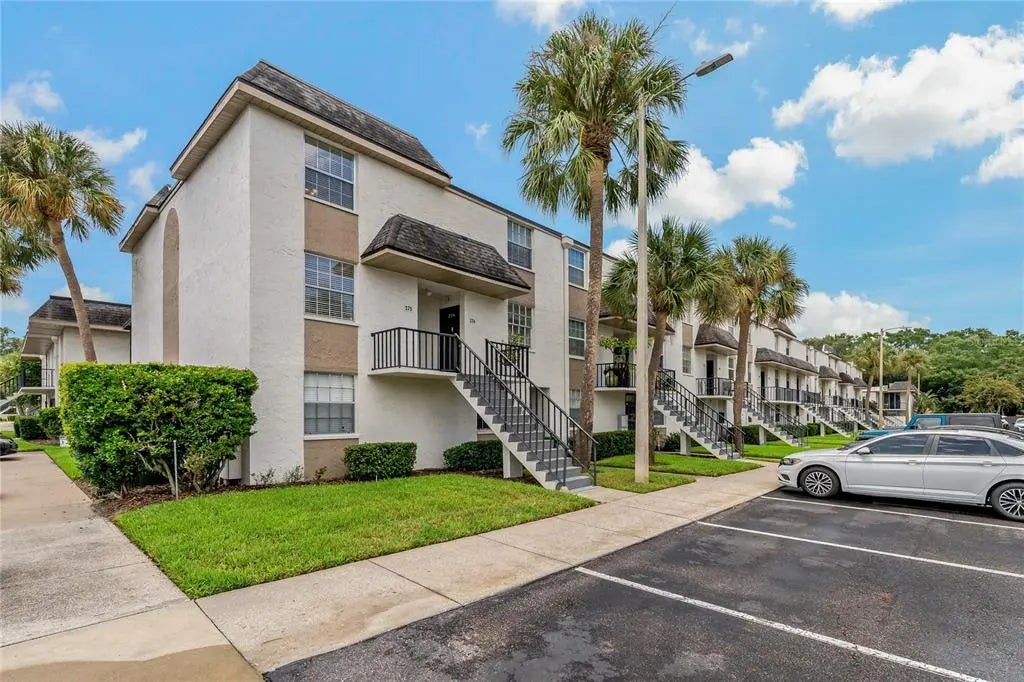 One or more photo(s) has been virtually staged. WELCOME HOME to this affordable END UNIT 2 BEDROOM, 1 1/2 BATH condo with a new AC system (2024)! Imagine coming home to stunning WOOD LAMINATE flooring in all living areas plus durable, attractive TILE in all wet areas. Whether entertaining guests or enjoying a relaxed family meal, the DINING ROOM with a window, custom WALL SHELF, sleek lighted CEILING FAN and CROWN MOLDING is located right where you would want it - near the KITCHEN. The aroma of flavorful masterpieces will waft from the KITCHEN which offers great lighting, plentiful cabinets, beautiful countertops, STAINLESS REFRIGERATOR, RANGE, DISHWASHER and MICROWAVE along with a new GARBAGE DISPOSAL. Notice the charming HALF BATH on this level of the home as you make your way toward the huge LIVING ROOM with lighted CEILING FAN, crown molding, an UNDERSTAIR STORAGE space and SLIDING DOORS leading out onto a SCREENED BALCONY with PAVERED FLOORING providing a view of one of the two COMMUNITY POOLS. The lovely WOODEN STAIRCASE elevates attention to the PRIMARY SUITE which connects to the FULL BATH by way of an expansive MIRROR-TOPPED sink and VANITY opposite a pair of MIRRORED CLOSET SLIDING DOORS. Natural light enters the PRIMARY BEDROOM through a window with a view of the manicured grounds surrounding one community POOL. Function meets beauty in the BATHROOM which offers not only a TUB/SHOWER but also a sink, vanity and framed mirror illuminated by an attractive double light fixture. The GUEST BEDROOM includes a custom WALL SHELF, window, lighted CEILING FAN, crown molding and closet. What could be more convenient that having a FULL SIZE WASHER (2 months old) and DRYER plus shelving tucked behind double louvered bifold doors? The low $290/month condo fee provides two refreshing community pools, reserved and guest parking, exterior maintenance including the roof, water, sewer, trash and grounds maintenance. Let your roots grow deep in this established condo community located near great shopping, favorite restaurants, and only minutes from I-75, the Crosstown Expy, 301, and I-4 allowing for an easy drive to everywhere you want to be. Come visit your new home today!