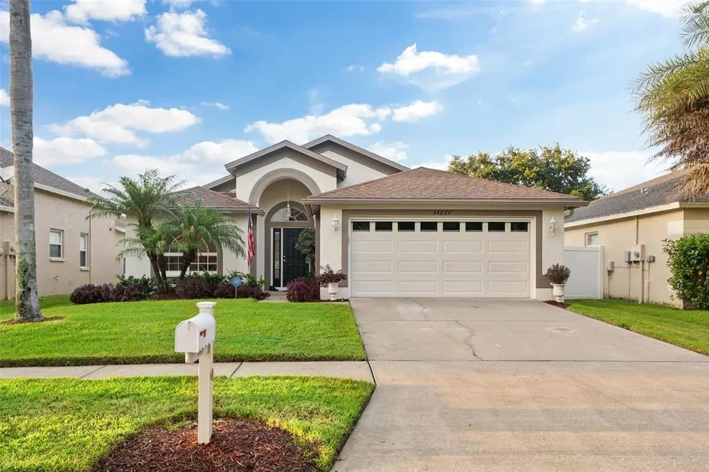Immaculately maintained home in the Zephyrhills golf course community of Lake Bernadette! Low HOA, Low CDD, Move-In Ready!! This beautiful 3 bedroom, 2 bath, 2 car garage home offers 1,703 square feet of spacious living space in an open floor plan with split bedrooms. It's perfect! Large kitchen provides plenty of cabinet space and stainless steel appliances. Formal dining room could easily serve as an office considering the eat-in breakfast bar and dinette area in the kitchen. Primary bedroom with walk-in closets features an ensuite bath with dual sinks and a tub with a separate shower. Bedrooms 2 and 3 share a full bath on the opposite side of the home. Dining room floor and all bedroom floors are Brazilian cherry wood. Remaining floors are ceramic tile. The star of this home is the outdoor space! Beginning with the extended screened in lanai that leads to a large fenced backyard, this home provides the perfect night time setting with it's custom built gazebo equipped with accent lighting. Lake Bernadette is an excellent Zephyrhills, Florida location and a close neighbor of Wesley Chapel. It's close to excellent local and unique dining venues while only a short drive to area shopping. In addition to the clubhouse amenities, The Links golf club at Lake Bernadette offers optional full year and seasonal golf memberships. Start living the Florida lifestyle by making an appointment to see this beautiful home today!