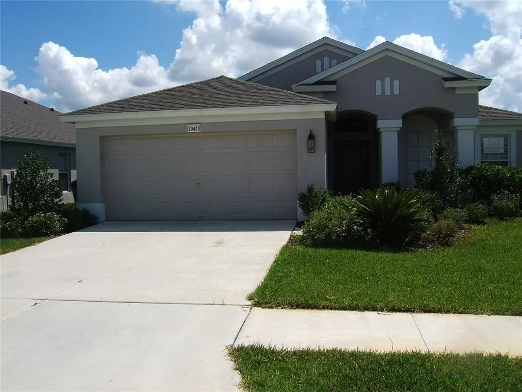 4 bedroom / 2 bath single family home with porcelain wood tiles in foyer, living room and bedrooms with pretty neutral tiles in wet areas. No carpet. Tall ceilings and open floor plan. Water view. Wonderfully located in Wesley Chapel's Palm Cove Community. Just minutes from major expressways, the new outlet mall, terrific shopping and amazing dining. Small pets welcome with $300 pet fee. This is a smoke-free home! LAWN CARE & WASHER/DRYER ARE INCLUDED! The neighborhood has many amenities including a large swimming pool, playground, sidewalks, & dog parks. Around the corner from Wesley Chapel District Park and the Epperson Lagoon. HOA APPLICATION AND APPROVAL REQUIRED