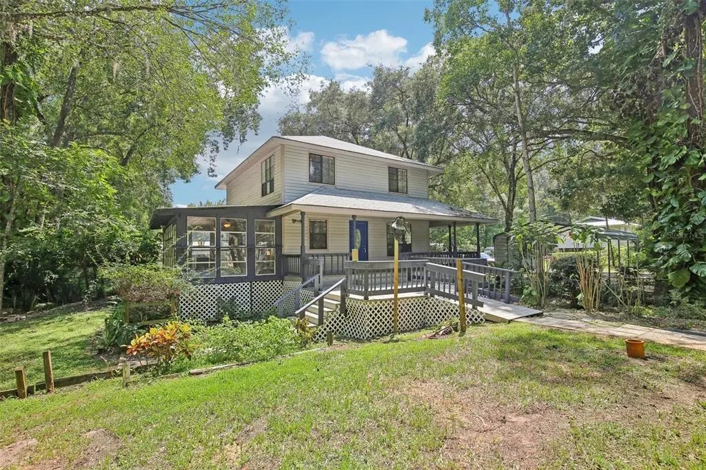 One or more photo(s) has been virtually staged. ***MOTIVATED SELLER*** CALLING ALL NATURE LOVERS! BRING OFFERS AND MAKE THIS PROPERTY YOURS TODAY! Here is your opportunity to own a piece of Old Florida paradise and enjoy the RIVER LIFE! This handsome Victorian Bungalow was CUSTOM BUILT in 1995 and it is located in the small, hideaway community of INDIAN BOW RETREATS, which provides you with deeded BOAT ACCESS to the WITHLACOOCHEE RIVER. Bring the boat, kayak, or canoe and your fishing rods, too! The PRIMARY HOME has so much CHARACTER inside and out, including a stunning WRAP AROUND PORCH, open air deck, LEADED GLASS DOORS, freestanding PROPANE FIREPLACES, and a FLORIDA ROOM that will entice you to spend most of your time there enjoying the wondrous view of the backyard. The .77 ACRE parcel is gorgeously studded with mature trees, bromeliads, and other flowering plants in the LANDSCAPING. The backyard neighbor is a wooded parcel that is home to tons of woodland creatures who live among the canopy of trees. You never know when a deer, fox, or raccoon may stop by to visit! There is plenty of BIRD WATCHING to be done as well, and the symphony of frogs and crickets will let you know when the sun is getting ready to set each day. If you’re an auto enthusiast or you have other land toys, there is room for those here, too! There is a 28x23 STEEL GARAGE with split roll-up doors and a double concrete driveway, and there are 3 ADDITIONAL paved parking spaces under CARPORTS, as well. The SECONDARY HOME (ADU) interior has been completely gutted, so it is currently available for use as ADDITIONAL STORAGE/WORKSHOP space. However, there is TREMENDOUS POTENTIAL to build out the home to serve as a BONUS RESIDENCE (1 Bath Studio Apartment) to allow for a MULTI-GENERATIONAL living or perhaps rental income. This RETREAT ON THE RIVER has so much to offer. Whether you’re looking for a PEACEFUL homestead, RELAXING vacation home, or a GOOD RETURN on investment, this dynamic property can satisfy it all! Call today to claim your piece of paradise at INDIAN BOW!