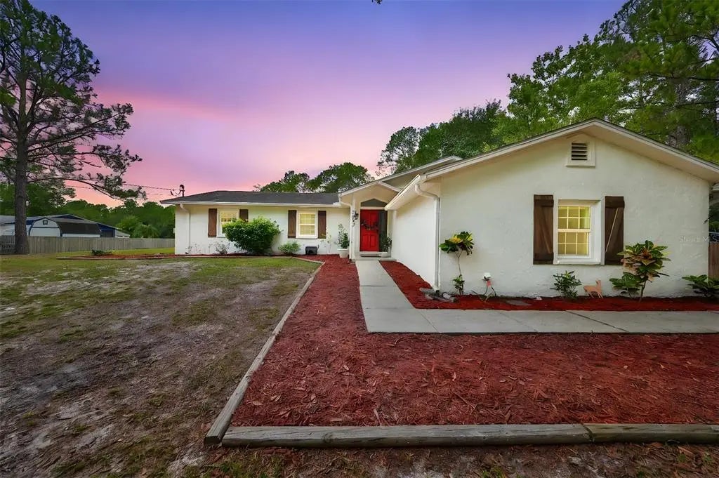 4 bedroom, 3 bath home on 1+ acre of fully fenced land No HOA, No CDD. Imagine living next door to horses and an expansive acre of pine trees, nestled in the highly sought-after Quail Hollow community. This rare find offers a true farmhouse feel with a country chic ambiance, all set on an oversized lot of over an acre. Embrace the freedom to keep chickens or grow your own vegetables, enhancing the charm of this unique property. The home invites you to start your day with a relaxing cup of coffee on a fully redone screened-in back porch featuring a new tin roof. Here, you can enjoy serene views of a family of deer wandering through the neighboring woods. The large deck is perfect for entertaining, while the custom fire pit adds warmth and ambiance as the weather cools. With two sheds on the property, you’ll find ample storage space. The large shed includes full electrical and working lights, while the chicken coop is equipped with its own electrical system and a working fan. The property is fully fenced with corral board and a top-to-bottom mesh wire, ensuring security for your animals and peace of mind for you. Large gates facilitate easy access for trucks, making it simple to add a pool or other features such as a golf putting green if you desire. The home features updated kitchen and master bathroom spaces, and fresh outer paint complemented by custom shutters. Two master suites offer flexibility; the separate suite with a private entrance can serve as a “mother-in-law” suite or guest room. The rustic stone fireplace provides a cozy focal point, especially as the holidays approach. Recent upgrades include new PGT double-pane insulated windows (2018), a new septic system (2020) with a new lift gate (2023), a new A/C system (2021), and a custom water filtration system (updated in 2022). The fireplace has been enhanced with a new firebox and heat panels (2019), and the enclosed back porch has been refinished with a new tin roof. Located close to Krate, Wiregrass, Premium Outlets, and other shopping, dining, and healthcare options, this property offers both rural tranquility and convenient access to modern amenities. With a backdrop of mature oak and pine trees extending past the fence line, you’ll enjoy a perfect, secluded area ideal for a future treehouse or simply soaking in nature’s beauty. This home in the growing Pasco County and Wesley Chapel area presents an exceptional opportunity for country living with contemporary comforts.