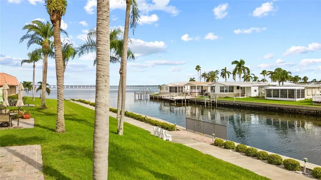 WATERFRONT! Location, location, Location! This gorgeous 2 bedroom 2 Bath totally remodeled villa style condo is the one you have been looking for. This awesome home was totally renovated “Down to the Studs” in February, 2021. No detail was overlooked in this unique design featuring open floor plan with water views from the front open gourmet kitchen all the way through the large windows at the rear. The beautiful kitchen is a chef’s designer dream featuring 42” cabinets throughout, Frigidaire Gallery stainless steel appliances, gorgeous quartz countertops extending to the oversized island featuring additional storage underneath. Extra electrical outlets were added to the kitchen for all of your appliances as well as throughout the entire villa . The home also features beautiful Luxury vinyl plank flooring throughout the home for a seamless look with the exception of tile in the baths. This home has a split bedroom floor plan. The primary bedroom features 2 closets: a walk-in with a barn door and a second closet and features a beautiful ensuite bath. This home also features recessed lighting through open area, crown molding throughout living spaces and bedrooms, plantation shutters throughout and a Leaf Water Treatment system with the reverse osmosis system on the line coming into the villa, Enjoy your morning coffee or a glass of wine in the evening from your paver patio overlooking the canal with awesome views of old Tampa Bay and the Bayside Bridge as you watch the Dolphins and the Manatees pass by. Hurricane Storm Shutters provide protection of your home on the canal side. Imperial.Cove is a waterfront, gated 55+ community located in the heart of Clearwater with easy access to the Gulf beaches, 2 airports, Tampa etc. This community features a large heated pool, shuffleboard, putting green, 2 fishing piers, large 2 story clubhouse with billiard tables, library, card room, his and hers separate fitness rooms, saunas, showers, large 2nd floor ballroom, onsite manager, social director with many planned activities in active community. Lighted walkway overlooking Bayside Bridge on Old Tampa Bay to watch the Dolphins and the Manatees 2024 Maintenance fee includes water, sewer, trash, outside maintenance, grounds, roof, cable, 2 cable boxes, internet and WIFI, insurance and flood insurance, recreational amenities. Must see, easy to show.