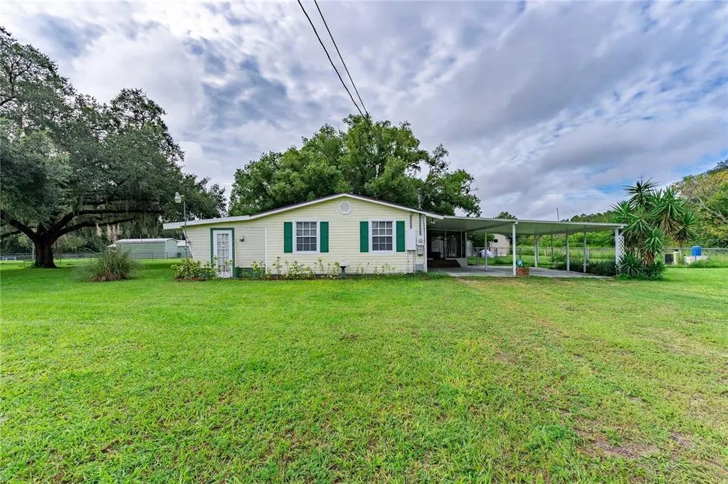 If you like peace and serenity of country living you need to see this property on 1.64 acres in Pasco County. A spacious 2 bedroom 2 bath with a bonus room and office area. This home will not disappoint. Drive up to the two car, car port and enter into a screened in porch, which is also the laundry area. Enter into the kitchen which has custom built wood cabinets, tile flooring and newer appliances. A spacious dinning room with a slider out to the back covered patio where you can sit and enjoy the BEAUTIFUL CAMPHOR TREE!! The back yard is fenced in with 3 storage sheds one with electric and water and a large carport. The whole property is also fenced in. Imagine having plenty of space for outdoor activities, gardening, or simply relaxing in your own private oasis while still being close to shopping, schools and all the essentials. Plus there's no Homeowner's association or CDD fees to worry about. You're conveniently located near New Tampa, Cross Creek, Wesley Chapel and Zephyrhills. This is the ideal spot for anyone looking to enjoy the best of both worlds- country tranquility and city convenience. Roof is less than 2 years old. A/C 6 years. Well 1 1/2 years. Septic line and fields 4 years. Hot water 1 1/2 years. New Windows through out