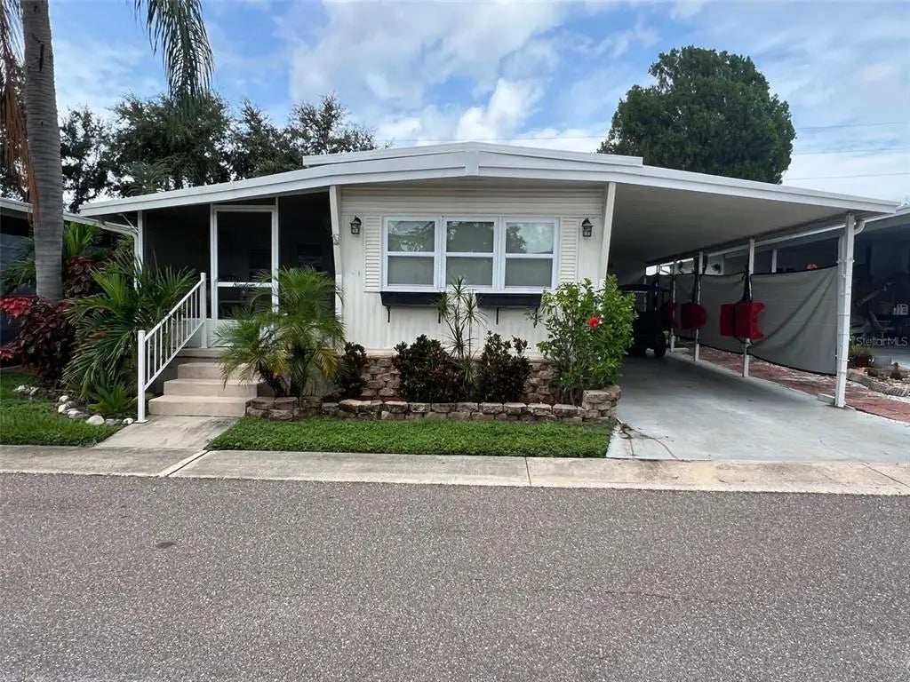 This charming home offers two bedrooms and two bathrooms, consisting of 792 square feet. However, it will feel more spacious thanks to its thoughtfully designed additional areas, creating an open and inviting atmosphere that maximizes every inch. You also have the added perk of no rear neighbors for uninterrupted tranquility. The quiet cul-de-sac location just enhances this already delightful home. Feline friends are also part of the family here, as two house cats are warmly welcomed. For just $218.00 a month, your maintenance fee takes care of essential services including water, sewer, lawn upkeep, and garbage removal, letting you focus on enjoying life. Dive into the community’s amenities, where you can relax in the heated pool, engage in friendly competition at the billiards table, or show off your shuffleboard skills. INTERIOR:Step inside this home and be immediately struck by its impressive array of upgrades! Tastefully furnished and decorated is how the home will be sold for your convenience. Upon entering you will immediately notice the newer screened porch with ceramic tile flooring.The heart of the home is the spacious 11 by 11-foot remodeled kitchen, featuring a stunning granite island , tiled backsplash and a suite of appliances including a range, ice maker, microwave, dishwasher, and a new refrigerator from 2022. The kitchen is a chef's dream with abundant storage options. This area opens to the Florida room (dining area as it’s being used now). Patio doors open to the attached 14x16 raised deck and patio. The guest bedroom is large with a pleasant view of the deck seen from this room. Outside of this bedroom is an open and spacious niche with added storage space. A trendy barn door closes off the guest bedroom. The guest bath has been remodeled with a new vanity, walk-in shower with stunning ceramic tile and a river rock flooring. The primary suite is in the rear of the home and also has a barn door for closure of the en suite bath. An abundance of closet and storage space along with a walk-in closet improves this space. The bath has a newer vanity and a walk-in shower. Most of the flooring is rich laminate with the baths having vinyl for durability. Freshly painted walls and new windows create a bright and airy atmosphere, complemented by a new split system air conditioning system, ceiling fans, six panel interior doors, new breaker box and a newer water heater. How exciting to move into a home filled with so many new features, allowing you to focus on enjoying life without the stress of repairs or updates! EXTERIOR:The outdoor spaces of this home are just as captivating as the interior! Gorgeous plush landscaping encompasses your very own sanctuary. The Florida style trees make for a great deal of privacy and are also low maintenance. You’ll discover a delightful patio deck, perfect for enjoying your morning coffee or entertaining guests. A huge plus is a 1 year old Blackstone gas grill and a golf cart, that will remain with the home! The roof over provides added stability, ensuring your home remains protected and secure through any weather. A carport offers covered parking, adding an extra layer of practicality. You'll find an 8 by 11-foot shed that houses a convenient stackable washer and dryer, making laundry days a breeze. Priced at $134,500,with a share, this property combines so many fantastic features with exceptional value, making it a true gem in today’s market.