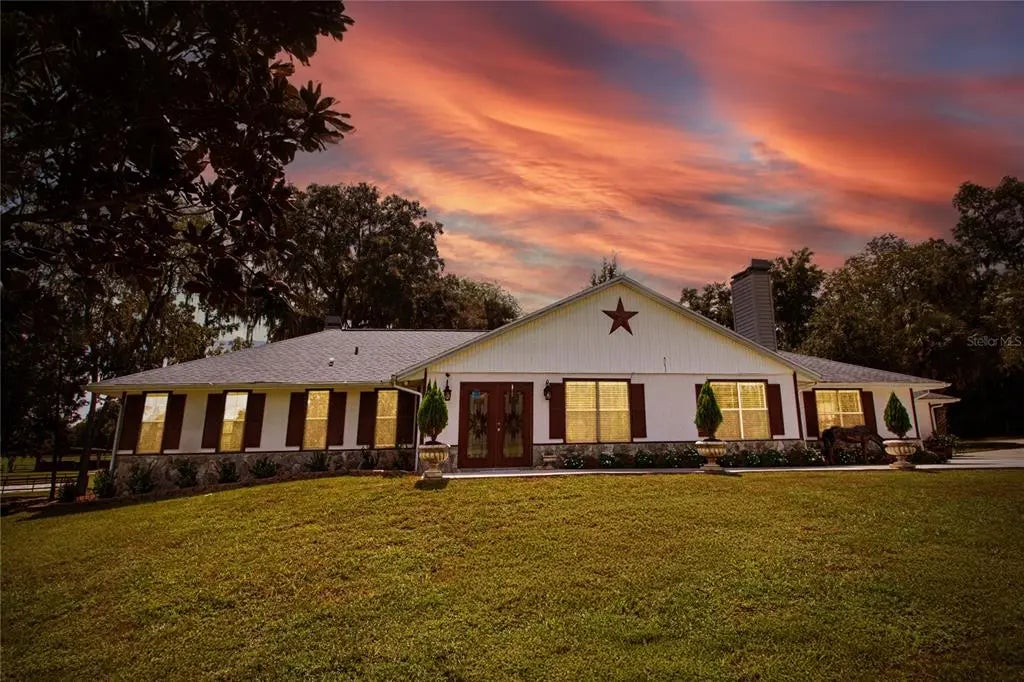 Discover your perfect escape at this enchanting estate of 27 acres on the scenic Spring Lake Highway that provides space for you and your luxury horse program. As you enter through the custom iron gate with a newly added keypad you will see the recently updated home offers blends of modern comfort and rustic charm. The inviting 4-bedroom, 2-bathroom, 2-car garage home boasts an open-concept design with ample natural light, perfect for gatherings and entertaining guests. Enjoy cooking in the fully equipped kitchen featuring stainless steel appliances including an induction stove, granite countertops, a large island, a farmhouse sink, plenty of storage, eat-in kitchen space, and a separate formal dining room. Step outside to a beautifully landscaped backyard, complete with a patio area, a screened pool to cool off on those hot days, and a lighted tennis/basketball court. The property also includes two center-aisle horse barns with 24 stalls. The main barn is 36X109 with 11 stalls with Stall Saver Mats, 12X24 foaling stall, water at each stall, new fans, a tack room, an AC feed room, and storage area with a washer and dryer, and hot water for washing the horses. The second barn is 60X40 with 12 stalls, Stall Saver Mats with new drainage, water, electricity, new fans, new Priefert horse Stock to make it safe for breeding, lighting, and a new tack room. Both barns include a NEW Equilume Performance Lighting system in barns to prevent winter coats for show horses. Also included is a covered & lighted pavilion/round pen, a large outdoor riding arena for jumping, all newer fencing, water to all pastures, 10 newly added turnouts, and newer electrical in both barns. There is an RV parking area with 3 RV hookups. One hookup is 20/30 amp & two hookups are 50 amp with electric, water, drainage, septic & BBQ area. At the front of the property, you will see a large workshop/warehouse that is a block building with a metal roof. This building has a full bathroom, loft, loading dock, large sliding doors, well & septic, and is fully fenced and gated. The entire property includes 5 parcels, 3 wells, 3 septic's, 3 electric meters, and 3 entrances onto the property. The roof of the home was replaced in 2018 and the HVAC is 2021. Conveniently situated just minutes from local shops, restaurants, and recreational areas, this property combines tranquility with accessibility. Schedule your showing today and do not miss out on the estate of your dreams!