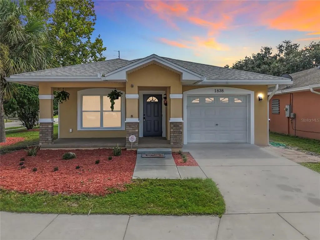 Solid block home, situated on a nice corner lot. ONLY FIVE MILES TO THE ICONIC CLEARWATER BEACH! AND please note, it's NOT in a flood zone! Lovely move in ready home has a lot to love! WHOLE house flooring is 18 in TILE. Yep! NO carpet! Big kitchen has granite countertops, rich golden brown wood cabinetry, extra deep farm sink with sprayer faucet. The stainless-steel appliances include a French door fridge, over the range micro, glass top range with convection oven, and brand-new dishwasher. All new lighting and plumbing fixtures bring the sparkle! The home is freshly painted inside and out. Some added features are French doors to the back yard, a water filtration system, hurricane shutter ready with the steel shutters included. Water heater 2023, AC 2011, Roof 2011, GARAGE is approx.12 ft x 18 ft provides plenty of extra storage, plus a new door opener! this home weathered the recent storm perfectly! Come get your slice of sweet Florida sunshine today!