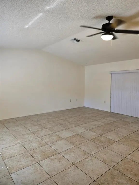 This open spacious single-family home is a 3/2 with a 2-car garage, fenced yard and inside utility room all situated on a large corner lot. Large Living/Dining room features sliding glass doors to the screened lanai. You will find the kitchen in the middle of the home and has been updated with new granite counter tops and kitchen cabinets. It is quite large with a breakfast nook for a small breakfast table and sliding glass doors to the lanai. The primary bedroom is located off the kitchen in the back of the home, and it features a walk-in closet as well as its own bathroom and access to the backyard. Brand new LVP flooring has been put down in all rooms except the kitchen which is ceramic tile. The other 2 bedrooms also have brand new floors and are good sized. The laundry room is located right next to the garage and is a large space for storage as well as laundry.
