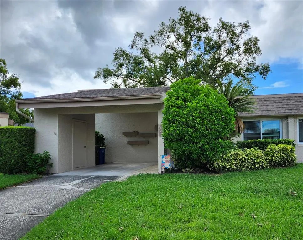 Must see! This nicely updated 2bed 2bath, 1-story, Villa style condo with attached carport! It's a pet friendly, all ages community right in the heart of Countryside in Clearwater, updated with real class! Walk in to the light & bright open floor plan with high ceilings and the perfect mix of warm & cool color tones. All brand new hurricane strength windows and hurricane sliding glass doors that open into a wonderful enclosed patio with new pavers for your outdoor relaxation time. The kitchen is updated with Granite counter tops, Stainless steel appliances and an Island adding extra storage space. Updates galore throughout! Electric Power Panel 2023, All Interior doors, Ceramic tiled bathrooms, Vanities with beautiful marble, Tub, Toilets, HVAC 2018, Water heater 2019, Plumbing 2019, Roof 2017 & durable laminate wood look flooring. Primary bedroom has a walk-in closet and en-suite bath. Inside laundry closet contains a newer full size washer & dryer. Bonus storage in Carport! This is an amazing prime location under 5 minutes to many shopping centers, restaurants & the Pinellas trail for biking & jogging. Clearwater Beach, Downtown Dunedin & Safety Harbor are very close by as well with more unique shops, pubs, seasonal festivals & other entertainment. Low HOA of $398! This covers Maintenance exterior, lawn, roof, cable, building insurance, and community pool. No flood zone! So own your piece of Florida paradise right here in this fabulous community of Winding Wood!