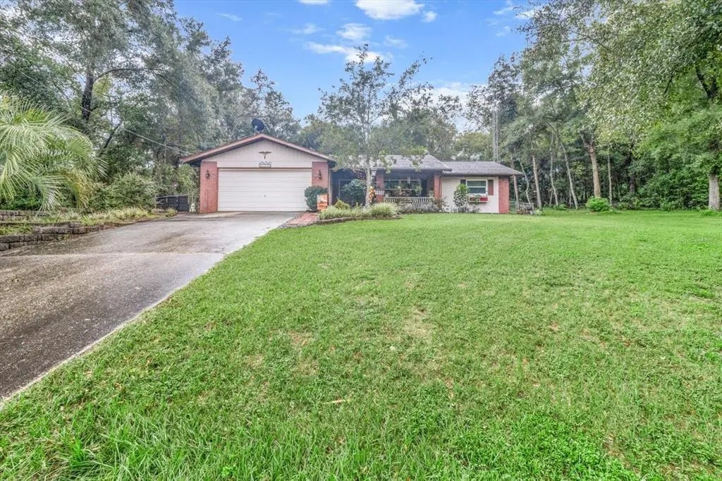 This is truly HOME SWEET HOME! Welcome to your bright and spacious 3bedroom, 2bath, 2Car Garage. Home is high and dry and not in a flood zone!. The open floor plan offers beautiful bamboo wood flooring through main living area and new LVP in the bedrooms. No carpet here! Updated kitchen and bathrooms. Home features a large living room, dining room, breakfast nook, family room, master on suite, split floor plan, awesome porch and more. The family room has a cozy wood-burning fireplace and sliders to a pavered lanai which extends to a pavered outdoor patio. Dining Room also has sliders to the lanai. Home sits on a 1/2-acre site with fenced backyard and cleared for your convienience. Plenty of parking for your RV and Boat. The DRA across the street adds extra privacy as no other home will be built there to block your view from the front porch. Public Water. Interior Laundry. New shed in 2017. HVAC 2019, and replaced 13 windows in 2017. Maintained with love!