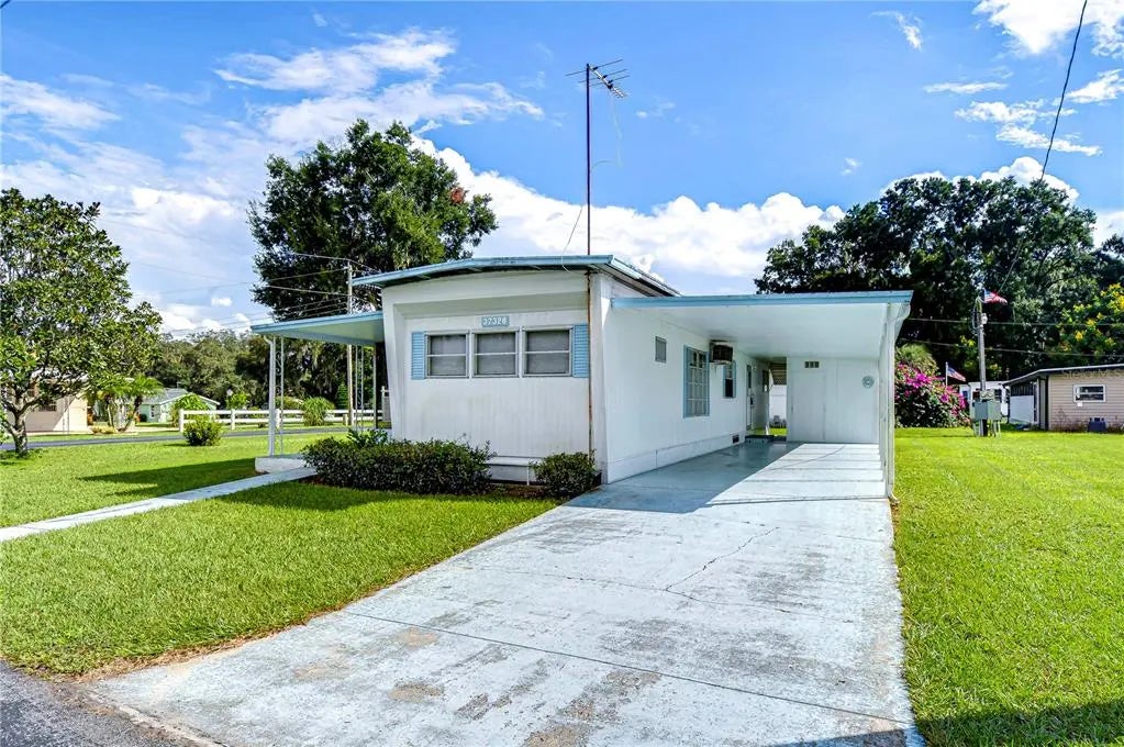Beautiful corner lot near the rear of the park. Furnished single wide with a side screen porch to enjoy your morning coffee or a book in the evening. New central heat and air installed in 2024. Split floor plan with a bedroom and attached half bath at the front of the home and a full bath and bedroom at the rear of the home. The back bedroom has a built in dresser across the back of the room. Both electrical boxes were updated in 2024. The front door off of the porch opens into the living room and the kitchen has a breakfast bar and eat in area. There is also a closet pantry in the kitchen. The rear door opens onto the carport where there is a utility shed with the washer and dryer. The park has a clubhouse and shuffleboard court. The HOA fee is only $200 a year. Call now for an appointment to view this home that is being sold furnished so all you need will be your personal items and clothing.