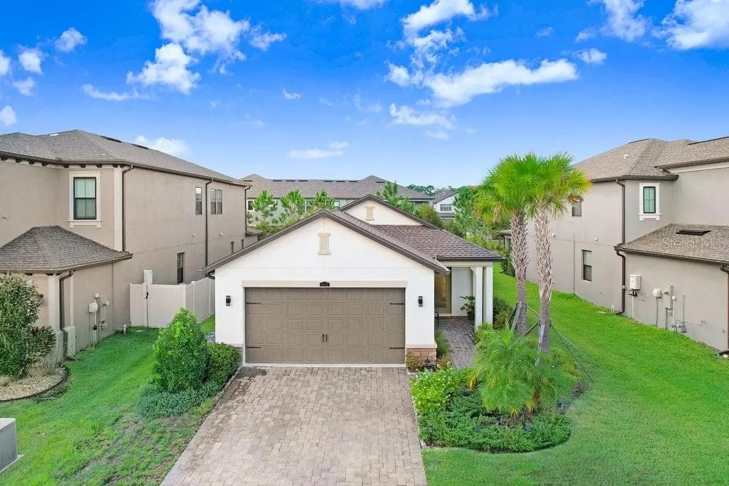 This immaculate like-new Estancia home boasts 3 bedrooms, 2 bathrooms, and 1,623 sqft of luxurious living space, perfect for hosting gatherings. This popular Sterling floor plan is fully upgraded and features elegant wood-look tile floors and 8' doors. The gourmet kitchen is a chef's dream, with 42" white cabinets adorned with crown molding, quartz countertops, and a stylish subway tile backsplash. The gas range, designer hood vent, and wall oven are perfect for culinary creations, while the expansive island with a sink and counter-height seating offers a casual dining option. The open-concept design connects the kitchen to the family and flex rooms, which can be easily transformed into a home office. Retreat to the spacious master suite with a tray ceiling and a luxurious master bath featuring dual sinks, quartz countertops, and a generously sized shower with floor-to-ceiling tile and frameless glass. FULLY FENCED backyard for privacy and security. The screened lanai, complete with pavers added to the patio, provides a seamless transition between indoor and outdoor living, creating an ideal space for relaxation and entertainment. This upscale community offers natural gas, reclaimed water, and a 7,000 sq ft amenity center with a junior-sized Olympic pool, resort-style pool, fitness center, covered playground, park, nature trails, and more.