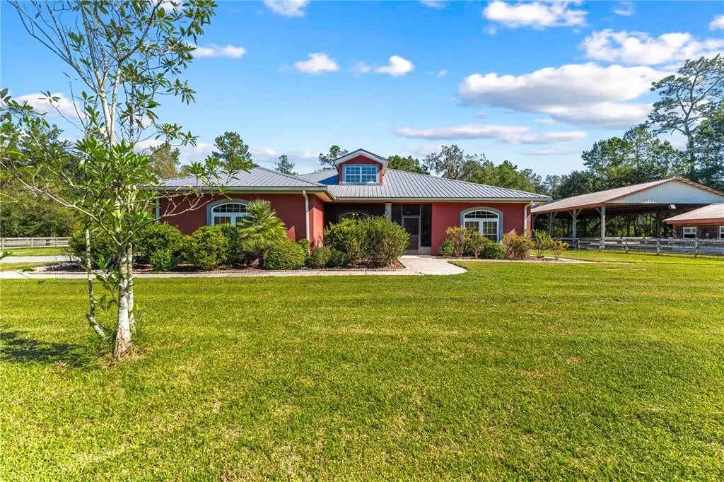 This beautiful & meticulous split-plan home sits on 2.5 acres with 3 bedrooms, 3.5 baths, Home is handicap accessible. Two of the bedrooms are spacious master suites with beautiful wood floors. One of the suites has dual sinks, garden tub, walk-in shower and walk-in closet. The other has a walk-in shower, single sink, walk-in tub, walk-in closet and sliding glass doors to the pool/patio. The double master suites add versatility to the home, providing a private and comfortable space for extended family or guests. All bathrooms, laundry room, kitchen and pool area have tiled floors, everything else, beautiful wood floors. The unique flow throughout the entire home was well thought out as was the attention to detail. The kitchen is a chef's delight, exhibiting amenities such as a service window to serve food & beverage to your guest in the pool/patio area, stainless-steel appliances including a Viking double oven, cooktop, refrigerator, and dishwasher. All wood cabinets, granite countertops, and a breakfast bar. There is also sliding glass doors that lead out to the pool/patio from the kitchen. The formal living room flows beautifully with the kitchen for entertaining while cooking. The family room has sliding glass door that leads out to the pool/patio and flows into the open dining room with tray ceiling. This area is highlighted by windows that brighten the rooms with natural light which offer views of the surrounding landscape which creates a wonderful area for entertaining and making memories. The workout room serves as a versatile space that can be used as a home office or a 4th bedroom. There are 7 ceiling fans throughout the home. The covered pool area provides space to relax outdoors and enjoy a cup of coffee, to unwind after a long day, or to entertain. Inside laundry room with utility sink for convenience right next to an oversized, side entry two car garage. The entire home has built in surround sound, intercom system, and alarm system should you choose to hook up and enjoy. Other upgrades or resources include custom made double front doors 2019, alarms on all doors when opening/closing, owned water softener, Generac generator 2019 with extended warranty until May of 2026, new garage springs 2024 with 5-year warranty, 250-gallon underground propane tank (currently refilled by Sunrise). Bayonet air conditioner 2018, still under warranty. Tankless water heater, new water tank in the well-house 2024, new pool vacuum 2024, new dishwasher 2023, new septic tank 2023, entire home has New South double-pane windows with a transferrable lifetime warranty. 2019 Super Screen on garage, New Metal roof 2023, New fencing around barn and front field 2023, the front fence has an electric pasture guard installed. This home is an equestrian's dream with features such as a 1,296 square foot barn/stable with four extra-large stalls with rubber matted floors, fan in each stall, individual water hose for each stall, concrete center aisle, feed & hay room, and a tack room. Also, a 3,024 square foot pavilion/arena with electricity. Property is zoned residential/agricultural. Come enjoy country living and make it your own! With a location that is close to shopping and restaurants, this stunning property offers the perfect blend of peace and quiet with quick access to all major highways to the surrounding cities/towns. If you're looking for tranquility, this is the perfect home for you!