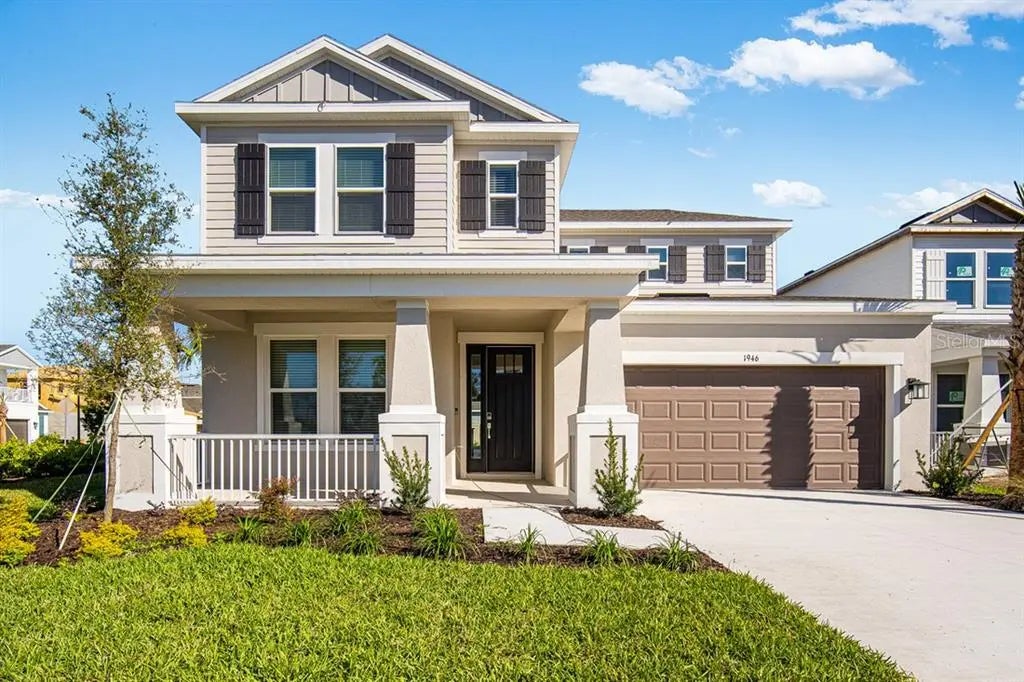 MLS#TB8310788 New Construction. Ready Now! The Bermuda is a stunning two-story home, offering 3,053 square feet of thoughtfully designed space. As you enter through the foyer, you'll be greeted by an open-concept layout with views extending all the way to the spacious extended lanai at the rear. This home features 5 bedrooms and 4 baths, perfect for modern living. Just off the entry, there’s a bedroom with an adjacent bath. Continuing down the foyer, you'll find the open kitchen and casual dining area—ideal for gatherings—with ample counter space, a large island, and a generous walk-in pantry. Beyond the dining area is the expansive gathering room, which flows seamlessly onto the lanai. The first-floor primary suite, located just off the gathering room, offers a luxurious retreat with a dual-sink vanity, walk-in shower, and a large walk-in closet. Upstairs, you’ll find 3 additional bedrooms and 2 baths, including one bedroom with an en suite bath and two others that share a conveniently located bathroom. Structural options include: bedroom 5 with bath 4 in lieu of flex and half bath, shower in lieu of tub at bath 4, gourmet kitchen, single pocket door, covered extended lanai, outdoor kitchen rough in.