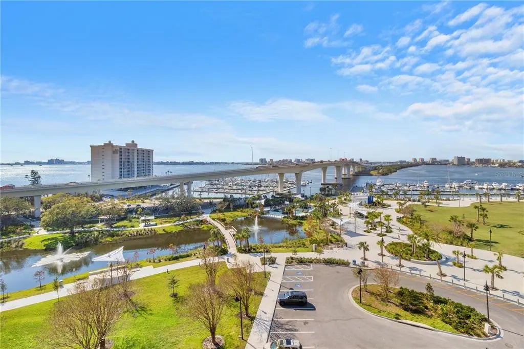 Experience luxury, waterfront living in this stunning 6th floor, southwest-facing, corner unit! Perched up high on Clearwater’s scenic bluffs, the Water's Edge building resides in a non-evacuation, non-flood zone offering unobstructed, breathtaking water views from every room. Superior construction and a back up generator will help put your mind at ease. THIS UNIT EXPERIENCED NO DAMAGE FROM OUR MOST RECENT STORMS! Designer-decorated interior featuring a spacious split bedroom floor plan with porcelain tile flooring throughout (tile/grout freshly steam cleaned) and floor-to-ceiling, double-pane, impact-resistant windows and sliding doors. The primary suite is where you’ll want to retreat with walk-in closet, reach-in closet and bathroom ensuite. Primary bathroom has a masive soaking tub, separate vanities, large walk-in shower and separate comode room. The kitchen is light and bright with a corner of windows, celing height solid wood cabinets, granite counters, stainless appliances, breakfast bar and dining space. Each of the versatile living areas can be customized to suit your lifestyle. The comfortable, private balcony has front-row seating to nightly sunsets and the absolute best holiday fireworks shows right on the Clearwater Memorial Causeway so you can avoid crowds and traffic! The guest wing hosts a 2nd full bathroom and two bedrooms separated by the spacious laundry room with a side-by-side washer and dryer. The 2nd bathroom has a spacious vanity area and a separate commode with shower/tub combo. Thoughtfully designed for comfort and convenience, the guest wing also includes a built-in desk, ideal for a home office or dry bar. Parking is a breeze with two assigned side-by-side parking spaces in the attached, gated, garage. Have too much stuff? Check out the on-site, air-conditioned storage room with your own private locker. Love the designer furniture? It's also for sale, separately. Recent upgrades include A/C (2024), water heater (2021), Dishwasher (2023), microwave (2023), disposal (2024), new kitchen and bath faucets (2024), new Kohler comfort and chair height toilets (2024), washer and dryer (2023). You will want to use the resort-style amenities daily: heated pool, spa, cabanas, a state-of-the-art fitness center with sauna, outdoor grilling area, and a cozy outdoor fireplace with wrap around couch. Need a spot to work? Check out the on-site business center. Rent the community room for your private events or join other residents for weekly community gatherings there, with billiards table, lounge area, bar, catering kitchen and private dining room. Rent a boat from Clearwater Harbor Marina's Freedom Boat Club, or keep your own boat at one of the 126 boat slips and 1600 linear ft of side-tie mooring (transient and long term use). Hop on the Jolly Trolly or Clearwater Ferry which both have pedestrian transportation to the beach, Island Estates/Clearwater Aquarium and Downtown Dunedin. Walk through downtown Clearwater to the Capital Theater, Public Library, boutiques, coffee shops, restaurants and the Francis Wilson Playhouse. Coachman Park is the home to the newest concert venue, The Sound premier outside performing arts amphitheater, with seating for 4000 people and a variety of concessions. Great for kids and adults with it's splash pad, playground, monthly market with local vendors and free weekly yoga classes. A one-of-a-kind opportunity to own a piece of Clearwater’s vibrant, waterfront lifestyle. Don’t miss out!