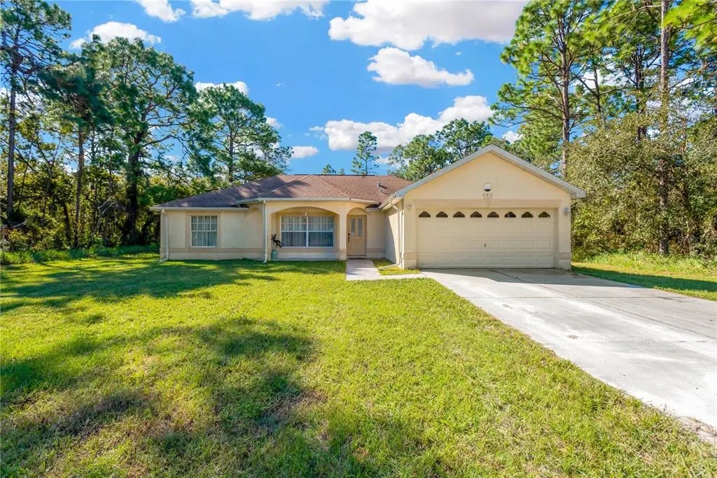Here is a great opportunity!!! .46 ACRES! 3 bedroom 2 bath 2 car garage! Get away from the city without straying too far from the conveniences of modern living. This home sits on a nice wooded .48-acre lot near the peaceful community of Weeki Wachee. There is ceramic tile in all wet areas. Enjoy the tranquility of nature from your back patio, or design your own outdoor oasis with plenty of room to add a pool, outdoor kitchen or even a playground next to the existing treehouse. Inside, the open floor plan boasts high tray ceilings and a spacious dining area for you and your family. The split floor plan offers privacy with two additional bedrooms and a guest bath on the opposite side of the home. The primary suite easily accommodates a king-sized bed and includes an ensuite bath with a large walk-in shower, dual-sink vanity with two walk-in closets. The Suncoast Parkway makes it just less than 45 minutes from Downtown Tampa and less than 12 miles from the famous Weeki Wachee State Park. Known for its outdoor adventures and natural beauty. Schedule a showing today. Come see how much your money will buy in Hernando County! Lots of new development in the area..hurry now before prices rise!