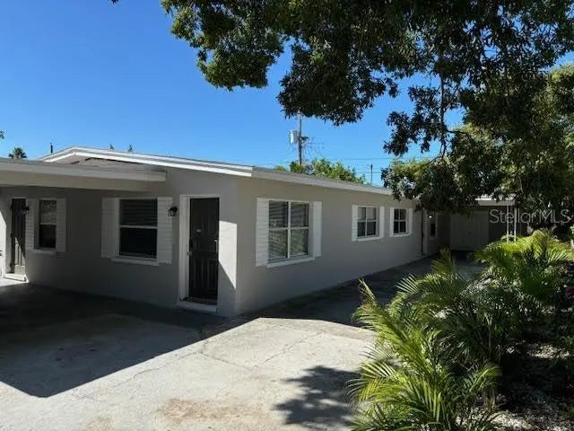 Turn Key BLOCK DUPLEX in central Clearwater. This property does NOT require flood insurance and does NOT have an HOA. Both units are 2 bedrooms, 1 bathroom units on separate electric and water meters. Each unit has nice-sized living room, eat-in kitchen, attached carport, private laundry rooms for each unit with washer/dryer hookups, and central air/heat. The front unit has tile floors through the entire living spaces, the rear unit has tile in all common areas with new carpet in bedrooms. Bathroom as and Kitchens have been recently updated with new fixtures and appliances. Great investment opportunity or live in one unit and rent out the other!