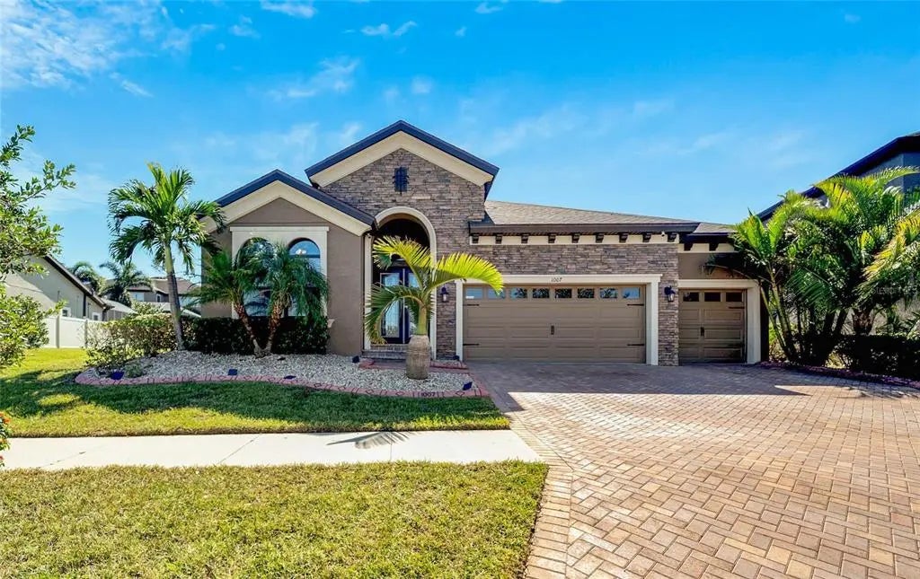 This spacious 3-bedroom, 3-bath WestBay home has a separate home office and located in the established community of La Collina in Brandon. A stone facade, a driveway with pavers, and a front porch with views of an open field highlight its curbside appeal. Step through the impressive double doors with lead glass into the spacious foyer. To the right is a guest wing with a secondary bedroom and full bath. Next is a separate home office, also ideal for a bonus or media room, and on into the spacious main living area with high ceilings and views of the pool. The eat-in kitchen is spacious and includes an extended island with a breakfast bar, a gas range, and a walk-in pantry. All this overlooks the Great Room with high ceilings and sliders that open up to the saltwater pool and spa and the outdoor kitchen with a fridge, ice maker, gas grill, and gas top stove. This provides an amazing entertaining area for friends and extended family with the cooler weather ahead. The Primary Bedroom has two closets, one of which is a walk-in, and a bath with dual sinks, a jetted tub, and a walk-in shower. The third bedroom and full bath are also in their own wing, giving extended guests privacy. You'll appreciate being close to shopping and restaurants while enjoying the oasis and amenities of the sought-after gated community. Thank you for your interest and for taking the time to see this lovely home in person.
