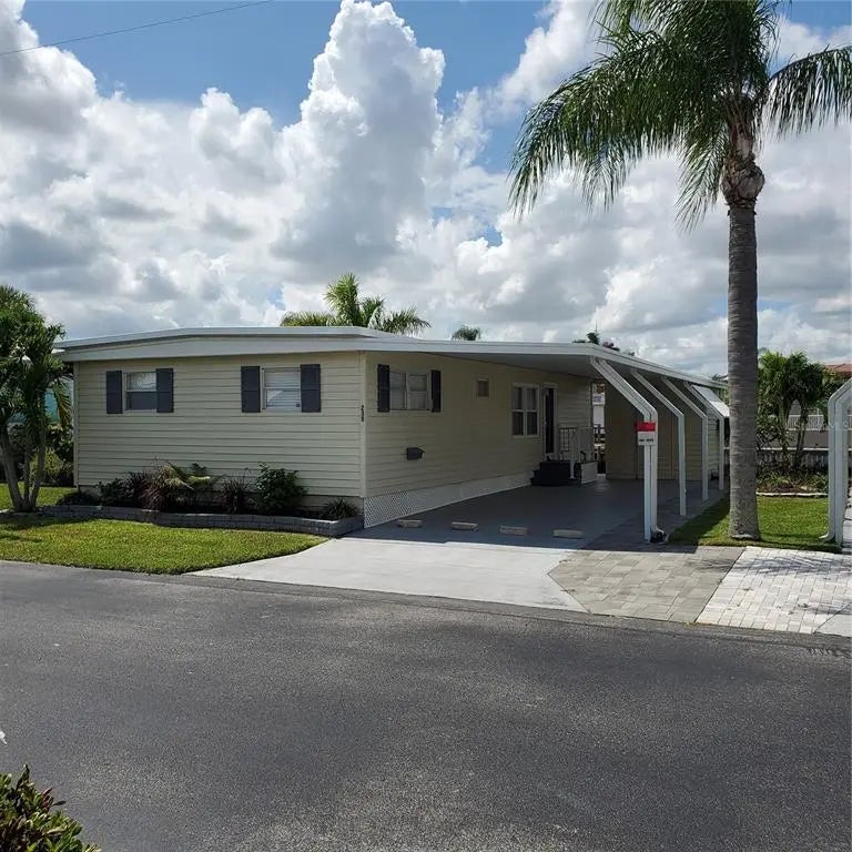 Waterfront home with great views! Excellent opportunity to purchase a waterfront home at a greatly reduced price. This property has been flooded by Hurricane Helene and the condition is reflected in the reduced asking price. CORPORATE OWNERSHIP, AN LLC, OR A PARTNERSHIP IS PROHIBITED! This would also be a prime location for your new home! The carport kick-outs make for easy loading and unloading of vehicles. There is also a professionally installed paver parking area for a golf cart. This home features dry-walled walls and the following items are newer: kitchen cabinets and countertops, several windows, front door, bathroom remodels, light fixtures and a waterfront 12'x14' screened-in porch. Do not forget the 9x10 Florida Room for leisurely Florida living. Plan a visit to Bay Aristocrat Village just to check out this waterfront community and the warm beautiful Florida waterfront lifestyle! The low monthly maintenance fee of only $350 includes lawn, trash, water and sewer. Located in beautiful Bay Aristocrat Village, one of Pinellas County's premier waterfront manufactured home communities, where you are a property owner, not a renter. This is an age 55 and over retirement community with many features such as a heated pool, Jacuzzi, shuffleboard courts, and clubhouse with varied scheduled activities and two fishing piers right on Tampa Bay. Bay Aristocrat Village is conveniently located just minutes from world famous Clearwater Beach, several high-end shopping malls, restaurants, major hospitals and two international airports. The asking price of the home includes the land share value. Only one cat per home is allowed. No dogs allowed. Contact community office regarding (ESA) pets.