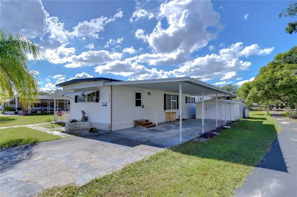 Light, bright and inviting. Open area with kitchen. dining, and living rooms make it easy to be a part of entertaining when preparing the meal. Kitchen has been updated with newer cabinets, counter tops and appliances. This single wide is furnished and has two bedrooms and one bath in the home. The bathroom has also been updated. The addition has a large 33x10 family room and room that is currently being used as an additional bedroom. It could also be an office or craft room. When you enter it feels like you have made it home. There is a carport on the other side with two sheds. One shed has the washer and dryer in it. The park is near shopping and restaurants. Great place for a winter retreat or year-round residency. This home sits on a corner lot. The park has a clubhouse and shuffleboard court. LOW HOA fee of $200 a year. Buyers must be approved by the park and have a credit check done plus, finger printing. There is a one-time $500 buy in fee that goes toward the road maintenance. Call now to view this this inviting home.
