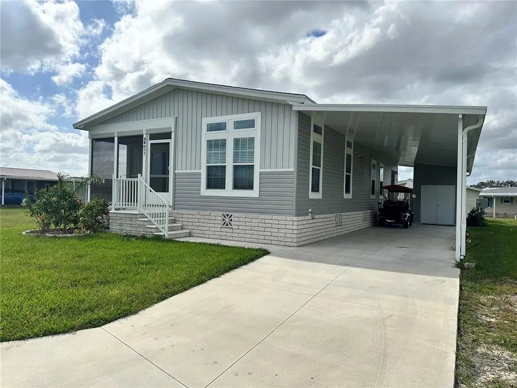 Welcome home. Crystal Lake is a 55+ land lease community, includes lawn care, gated community and use of all amenities. Home features a 3 bedroom, 2 bathroom, screened in lanai with a view of the pond, and at 1,352 sqft. Make of the home is Destiny Moultrie, Model is Spring Hill. This amazing kitchen is equipped with all stainless-steel appliances. The kitchen centers around a large island with a stainless-steel farmhouse sink with garbage disposal. The main bedroom is large enough to accommodate a king size bed and two dressers with room to spare. Two guest bedrooms located on the opposite side of the home from the main bedroom gives your guests plenty of privacy during your stay. Community application required and adherence of the community rules and regulation apply. Application fee is $50.00 for each person and can be completed at the sales office. Don't miss this opportunity and tour this home today!