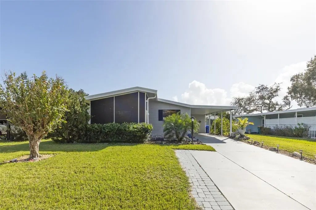 Beautiful 2 bedroom/2bathroom home with a carport and screened-in front porch located in a fantastic, quiet 55+ community with chain of Lake access. NO LOT RENT: You own the land. Beautiful home in a quiet, golf cart friendly, 55+ community. Great layout with vaulted ceilings and multiple upgrades, new flooring, refinished kitchen, new bathroom mirrors and vanities, new interior paint, and more. Stunning and spacious master bedroom with 2 built in closets and an ensuite featuring two vanities, private toilet and stand-in shower. Come enjoy the Waterfront Central Florida Lifestyle. Low HOA of only 60$/month. Newer 2019 Roof and 2017 HVAC. Schedule a showing now!