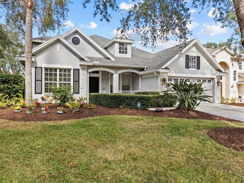 Welcome to Northfield, Palm Harbor's hidden gem! Centrally located in the heart of the East Lake Corridor is this exquisitely appointed executive pool home on a huge, private, tree lined, pie shaped lot with the ultimate privacy. This stunning, home is move in ready. As you enter, you'll be greeted by soaring ceilings and elegant crown molding, setting the tone for the open-concept layout. The formal dining room is ideal for entertaining, while the expansive great room flows seamlessly into the kitchen and breakfast nook. The chef-inspired kitchen boasts a large center island, endless cabinetry, stone countertops, and high-end stainless steel appliances. The tumbled marble backsplash adds a stylish touch to the space. After a long day, retreat to the luxurious master suite, located on the main level, featuring a generous walk-in closet and a spa-like bath with a whirlpool soaking tub and separate shower. Also on the main level, you'll find two additional bedrooms, a dedicated office, a bonus room/study, and a convenient desk workstation. Upstairs offers an enormous bonus/media room, flanked by two more bedrooms and a full bath—perfect for guests or family fun. Enjoy views of the meticulously landscaped yard and sparkling pool area through the many windows throughout the home. Outside, the Pebble Tec pool offers hours of relaxation and entertainment, while the covered lanai is perfect for alfresco dining. Additional highlights include three-zone A/C, a well irrigation system for cost-effective lawn care, energy-efficient windows and fans, and beautiful crown molding throughout. As a resident of Lansbrook, you'll have access to community amenities, including a park, playground, and the Lake Tarpon community boat launch. Located just minutes from A-rated East Lake High School, top-tier golf courses, beaches, shopping, fine dining, and Tampa International Airport, this home truly has it all!