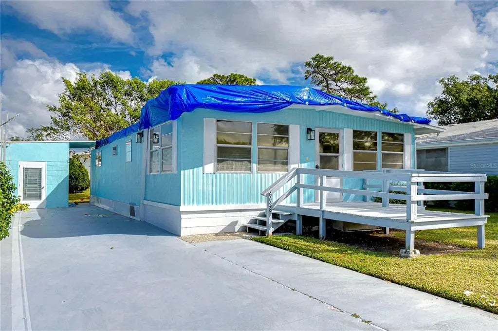 Charming 1968 Double-Wide Mobile Home with Endless Potential! This is a handyman's dream, Step into this spacious, vintage double-wide mobile home, brimming with character and an inviting open floor plan perfect for relaxed living. Featuring 2 comfortable bedrooms and offered fully furnished, this home is an ideal blank canvas for those seeking a cozy retreat. While it sustained some damage during Hurricane Milton, with a roof and carport needing replacement, the sturdy bones and unique layout make it worth the investment. Outside, a concrete storage building offers ample space for your laundry appliances, gardening tools, and more. With a few repairs and a touch of creativity, this gem could easily transform into a charming retirement haven or a warm winter getaway. Embrace the opportunity to bring your vision to life in this home that’s just waiting to shine again!