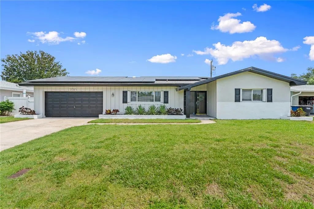 Welcome this tastefully updated, nearly 2,100 sq ft pool home which offers 4 bedrooms, 3 full bathrooms and a 2-car garage and is located in one of Clearwater’s most desirable neighborhoods. This property sustained no storm or flood damage from last year’s hurricanes and is located in flood zone x, meaning no flood insurance is required. It's also in a non-evacuation zone, with no HOA fees, and comes equipped with numerous energy-efficient upgrades including a fully paid-off 11 kw solar panel system for significant cost savings and year-round peace of mind. Inside, you’ll find elegant wood-look tile flooring throughout the entire home (yes, no carpet!), and a gourmet kitchen featuring quartz countertops, a Frigidaire Professional built-in refrigerator and freezer as well as ample cabinet space. The open-concept living and dining area, complete with french doors, flows seamlessly to a large screened-in lanai and pool area which is perfect for entertaining or relaxing in private comfort. The flexible floor plan includes two large bedrooms with ensuite bathrooms, ideal for multi-generational living or a luxurious guest suite. Two additional bedrooms provide endless possibilities. Additional features include new exterior paint (2025), newer roof (2022), newer HVAC and water heater, built-in hurricane shutters, an impact-rated garage door, and a whole-house water filtration system. This home is ideally situated being just 15 minutes from world-famous Clearwater Beach, less than 15 minutes to Costco, Target, Home Depot, Lowe’s, countless dining options, Ruth Eckerd Hall, Safety Harbor, Dunedin and the St. Pete-Clearwater Airport, 25 minutes from Downtown St Petersburg and the Tampa International Airport and 30 minutes from Downtown Tampa. This home combines convenience, comfort, and long-term value. Don’t miss your opportunity to see this exceptional property, schedule your private showing today!