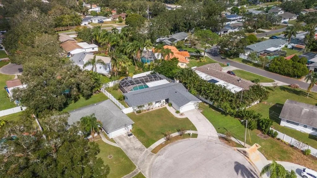 One or more photo(s) has been virtually staged. New Roof 2024. This home has been lovingly cared for by the same family for the last 48 years. Located in a non-evacation zone in Clearwater, Florida. This home DID NOT experience any flooding or damage from Hurricanes Helene or Milton. This concrete block home has 4 Beds, 2 Full Baths, a Kitchen with eating-in dining space, and a 2 Car Garage. The vinyl-fenced backyard has an oversized in-ground pool and a recently re-screened pool enclosure. Mature landscaping offers that tropical Florida feel. The home needs interior/exterior painting and updating in the kitchen, hall bath, and windows. The laminate flooring was installed throughout the house in 2023, along with a new master bathroom shower. If you're looking for a diamond in the rough, you've found your gem. No HOA or Flood Insurance required. Settlement remediated in 2006.