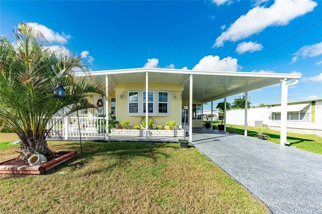 Come see this very well maintained unfurnished home in Betmar Acres a 55+ community where you own the land and a low yearly fee of only $423. Drive up and you will see this home starts with great curb appeal. A Painted driveway with a cozy front porch and beautiful landscaping. Step into the living room which is open to the dining and kitchen area. The Kitchen in the front of the home with a gas stove and bead board back splash and lots of cupboards. A breakfast bar separates the the dining area. Down the hall you will find a bedroom with a murphy bed and a half bath added on the other side of the hall. Primary bed is the back of the home. The main bath has been updated to include two sinks with a stone top and a new tub. Step down to the Florida room which has sliding windows(2020) and wood decking floor. The laundry and golf cart shed is in the back of the Florida room. A door to the back yard which has plenty of space for entertaining. All the windows and siding have been replaced in 2012.. A new rubber roof 2021. A/C 2014. The plumbing has been redone and also the electrical box. Just pack your belonging and move right in and Come and enjoy Betmar and all the amenities to include Walking trails over bridges and ponds, 2 swimming pools, 2 hot tub, tennis, pickle ball, basketball, bocce, 27 holes of golf, shuffleboard, mini golf, billiards, game rooms, library, clubhouses, planned activities, Bingo and fun events.
