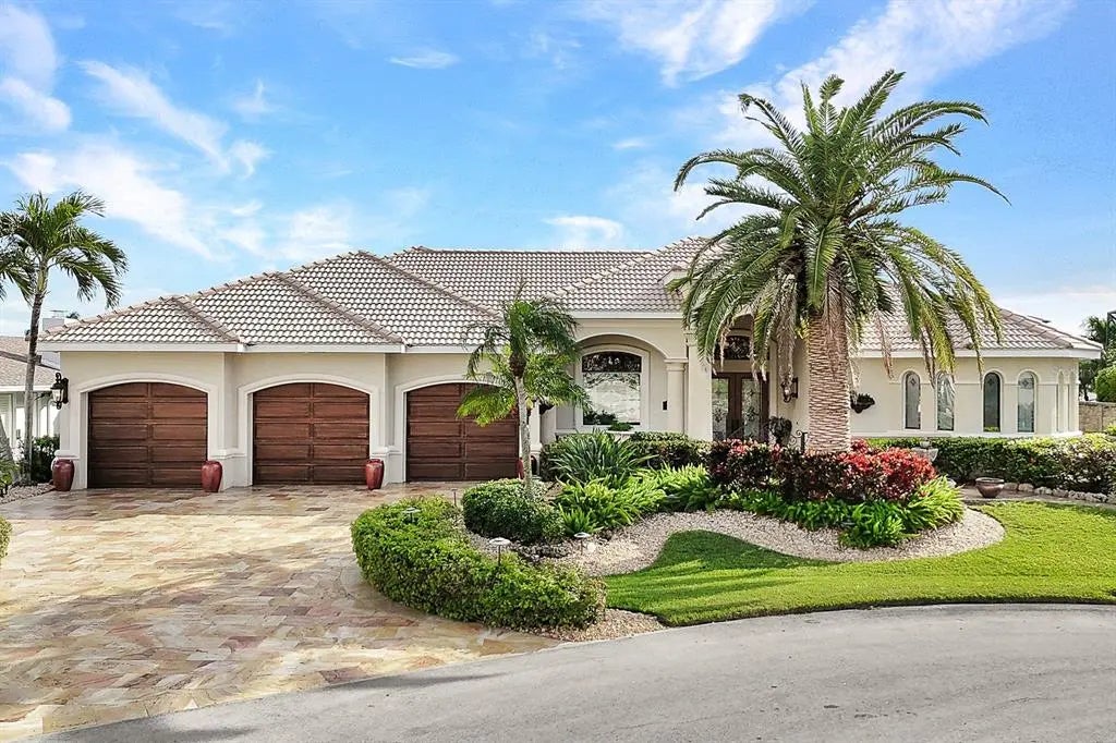 Welcome to your exquisite custom Aubuchon home with direct Gulf Access (no bridges), nestled in the active boating community of Cape Coral. No detail was spared in the professional design and award-winning construction of this beauty. As you walk through the double entry doors, you’ll immediately notice custom crown molding, ceiling inlays, custom paint and lighting accents throughout. The split floorplan layout is ideal for privacy, with a large primary suite that features French doors to the lanai, a walk-through shower, stained glass picture windows, soaking tub, and dual solid wood vanities. This home was designed for entertaining with an open concept kitchen/living area featuring 90 degree pocket sliders blending seamlessly with the lanai for that coveted indoor/outdoor feel. You’ll enjoy preparing meals in your gourmet kitchen with solid wood cabinetry, ambient lighting, newer appliances, wall oven/ microwave, and gas stovetop. More than 1,400 sq ft of outdoor living awaits with a fully screened travertine lanai surrounding the heated pool/spa complete with ambient lighting and decorative accents. Need a break from the sun? Not a problem with the large living, dining, and summer kitchen area under truss allowing you to spend more time outdoors and out of the sun. The 763 sq ft garage with poly-vinyl floormat provides ample storage for cars and toys. Wooden dock and seawall already in place. Quick access to the river and Islands allows you to more easily enjoy the boating lifestyle, with plenty of waterfront dining and entertainment nearby. This meticulously and lovingly maintained home will not disappoint. Schedule your private tour today!