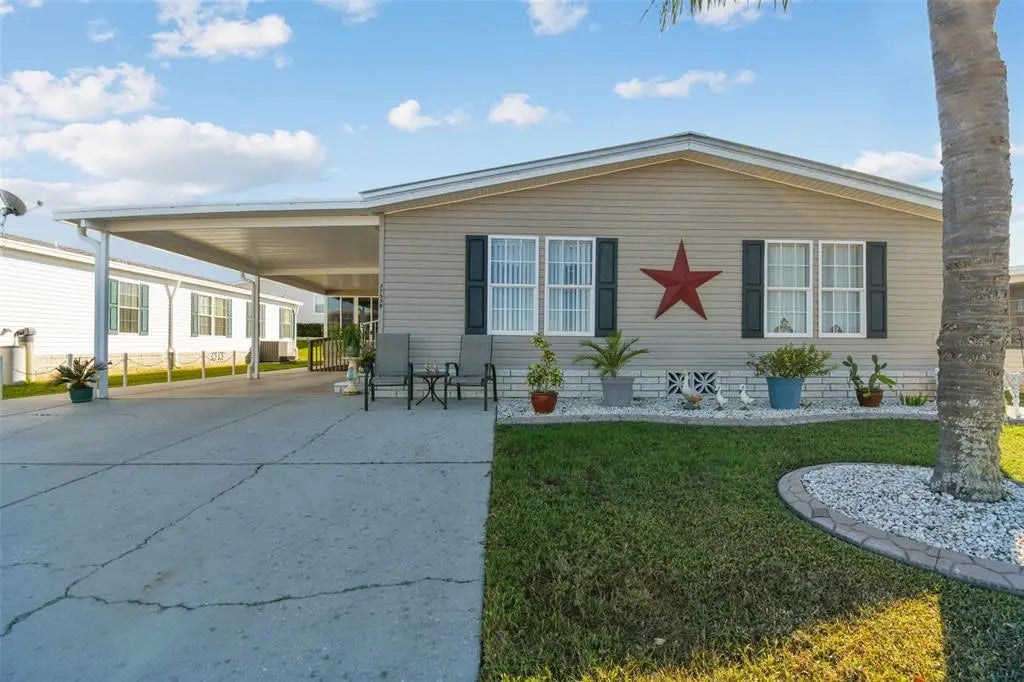 High and Dry...Come and Buy! This property is truly a one of a kind! There are so many selling points for this home, but one that makes it most unique is the In-Law/roommate headquarters complete with its own primary bedroom and in-suite bathroom, family room and separate exterior and interior entrance. The rest of the home comes equipped with very spacious rooms. In the kitchen you will find lots of cabinets for storage, a built in china cabinet, and an island with seating as well as a connected dining space. Double primary bedrooms include large walk-in closets. You’ll also love the office, spacious guest room, guest bathroom with tub, and luxurious laundry room. The laundry room leads out to the 14X16 garage with overhead door, perfect for storing your belongings and golf cart inside. Attached you’ll find a lovely Florida room with cordless honeycomb blinds and newer mini-split Heating and cooling unit. Upgrades to this amazing home include: new plumbing 2019; new AC with added filtration for allergies and asthma 2018, new duct work 2021, new metal roof December 2021, Luxury Vinyl flooring December 2021, and seamless gutters 2022. Home is found in the sought after 55+ gated community of Grand Horizons. Property is conveniently located across from additional community parking and the clubhouse. Mailbox is right out front as well. Seller is including several household items and some furniture. Be sure to schedule your appointment today!