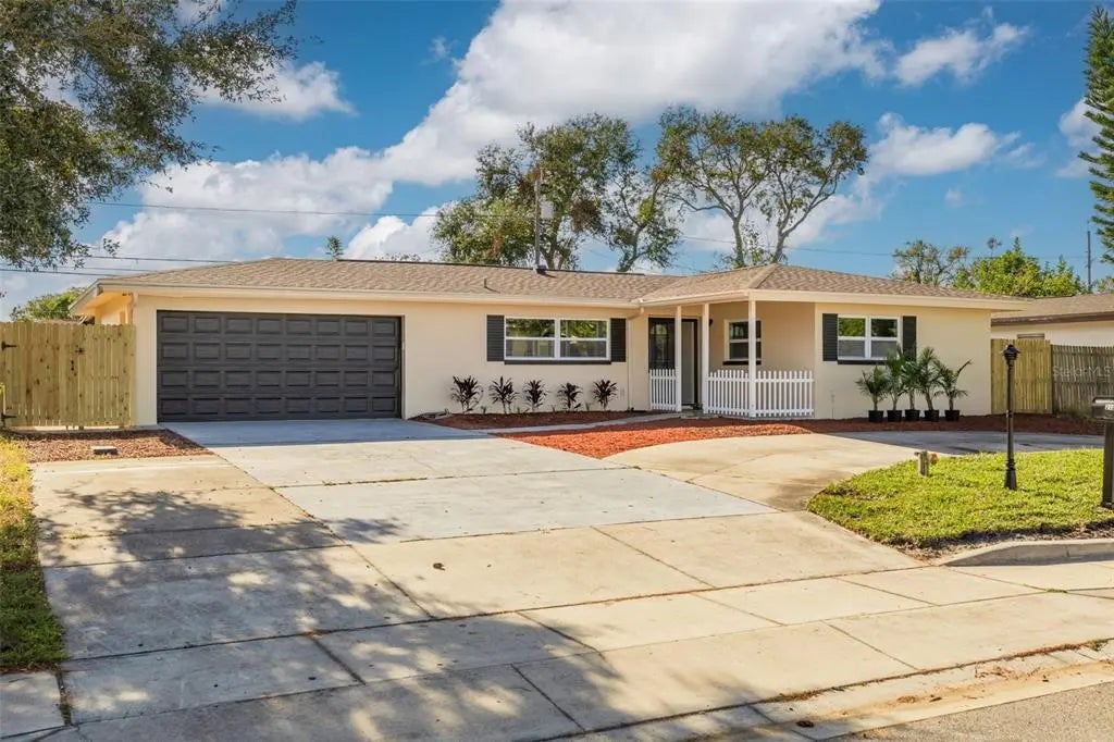 Welcome to your beautiful new pool home! This gorgeous, open concept beauty has 1,285 square feet of interior living space and plenty of outdoor space to enjoy, as well. Features include updated kitchen cabinets, new Frigidaire stainless steel appliances and gorgeous granite countertops, luxury vinyl flooring, new baseboards and fresh paint inside and out! The kitchen is a cook's delight with a mix of drawers, cabinets and built ins. There's a dining area for hosting family and friends or make it functional and use it as a library or work space. Next is your amazing Florida room (or oversized dining room) with tons of natural light gleaming through the new windows and beautiful french doors framing views of the refreshing pool and fenced back yard! Retire to the spacious owner's suite. There's plenty of room for a king sized bed, an updated private en-suite and modern barn door for easy, but stylish access. The 2nd bedroom has plenty of room too with warm natural light, an oversized closet and convenient to the beautifully updated hall bath that also serves your guests. The HVAC system was installed in 2021, electric panel 2022, new roof 2024, fully fenced yard (2024), most windows are new in 2024 and a 2 car garage with lots of built in storage NO HOA required for this home! There's a Community Membership available for a small fee that allows access to a community heated pool, fitness center, clubhouse and game room. Close to restaurants, shopping, art venues and the beaches. Style, comfort and convenience right in the heart of Clearwater!