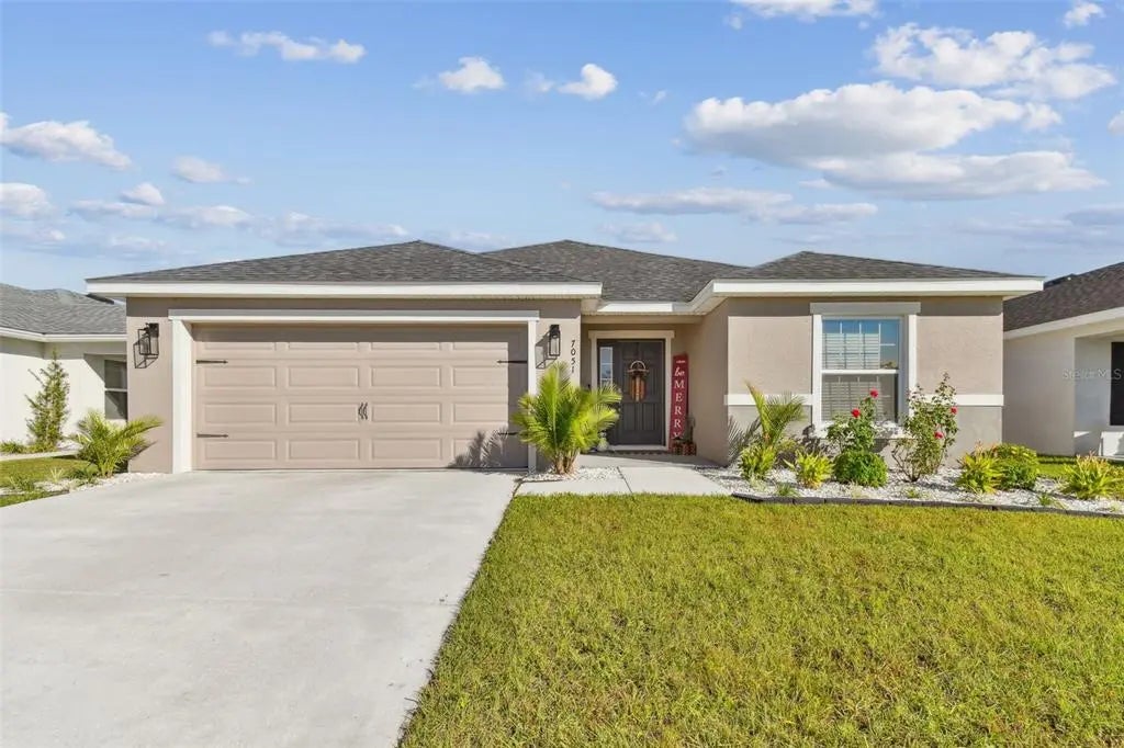 Why wait to build when your dream home is ready now? Step into the perfect balance of style, comfort, and functionality in this beautifully designed one-story home. With 4 spacious bedrooms and 2 baths, this home offers a modern layout that’s perfect for relaxing, entertaining, and everything in between. The open-concept living area flows seamlessly from the dining café to the gathering room, creating a warm, inviting space for friends and family. At the heart of it all is the show-stopping gourmet kitchen, where rich espresso cabinetry, sleek Samsung stainless steel appliances, and a large walk-in pantry combine to make cooking a breeze. The oversized island doubles as a workspace and casual dining hub—perfect for meal prep, morning coffee, or hosting happy hour. Durable vinyl plank flooring brings a touch of elegance to the living areas, laundry room, and baths, while the cozy bedrooms are built for comfort. The owner’s suite is your private escape, featuring a walk-in closet and a spa-like en-suite bath complete with dual vanities, a tiled shower, and a closeted toilet for added privacy. Step outside to the serene covered lanai, epoxy flooring, the ideal spot for morning coffee or evening gatherings. The private, enclosed vinyl fence ensures peace and quiet while you enjoy your outdoor space. Additional features include a 2-car garage, custom-fit window blinds, and energy-efficient insulation and windows to keep your home comfortable all year round. Whether you're hosting lively get-togethers or savoring peaceful moments, this home is designed to elevate your lifestyle. NEW Water Heater (2025). Don't miss the chance to make it yours!