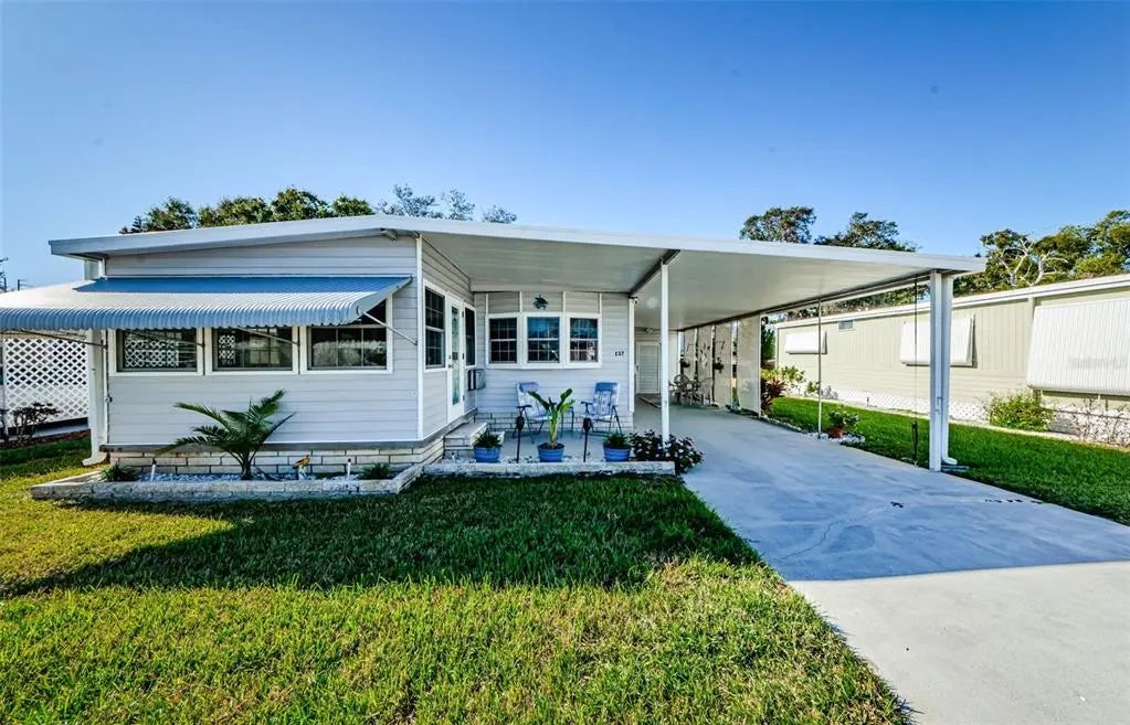 Move-in Ready Double-Wide Manufactured Home. Beautifully Updated 2 Bdrm/2 Bath with No Rear Neighbors and Front Covered Porch. There is a 2 Car Carport and 2 Sheds providing lots of storage space and with a Washer and Dryer. The Florida Room Adds an Additional 130 Square Feet That Is Not Included in The Heated Square Footage. FURNISHINGS ARE OPTIONAL. Located in the Very Popular Tarpon Shores Resident Owned 55+ Community. **NO LOT RENT- YOU OWN THE LAND** The Share Price of $40k for the Land can be financed through the HOA. The Share Price is included in the List Price. ***NO FLOOD OR WIND DAMAGE FROM THE LAST TWO STORMS*** METAL ROOF (2006) was inspected and is with 18+ years life left., HVAC and Ductwork New (2023). Vinyl Siding. This is a well-maintained home. The Floors are solid and the vapor barrier has been reinsulated and is in good repair. The Florida Room Has New Waterproof Vinyl Plank Flooring, All New Thermal Double-Pane Windows, and A Newer Beautiful Decorative Glass Front Door. This Home Has a Lot of Closet and Storage Space. Low Taxes, NOT in a Flood Hazard Zone. The Kitchen Is with Lots of Cabinet Space. All Of the Appliances Convey. The Dining Room has a built-in hutch with Glass-front cabinets and Bay Windows. The Primary and 2nd Bedrooms both have Queen Sized Beds and Walk-In Closets. The En-Suite Bath and 2nd Bath Has a Step-In Showers. There Are Ceiling Fans with Light Fixtures in Both Bedrooms, the Living Room, and the Florida Room. ***Tarpon Shores is a friendly and vibrant community where you can live like you are on vacation all year round. The community offers a variety of organized social activities and numerous amenities, including a large clubhouse, heated pool, BBQ grills, kitchen, library, billiard room, covered shuffleboard courts, bocce ball court, pickleball court, horseshoe pits, and monthly newsletters. The low monthly fee of $290 includes lawn mowing, lawn spraying (fertilizer, insecticide, and weed control), water, sewer, trash pickup, cable TV with a park information channel, and internet.*** Whether you enjoy golfing, walking, bicycling, fishing, swimming, boating, shopping, fine dining, or watching breathtaking sunsets, it is all at your doorstep at Tarpon Shores. Low HOA fees with No Additional Fees, and No Special Assessments. Tarpon Shores has a very well-run HOA with fully funded escrow reserves. This is an excellent opportunity. Please note that no pets are allowed except for service or emotional support animals with a completed application and proper documentation. Check out the Virtual Tour. This home is a rare find, offering privacy and a vibrant community lifestyle. Do not miss the opportunity to make it yours! Call Today for a Private Showing.